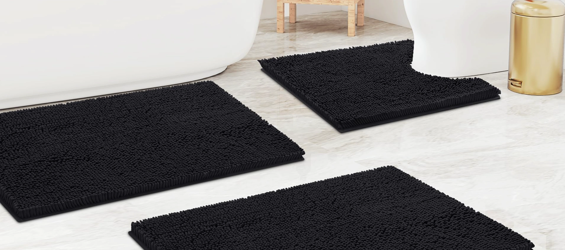 Smiry Soft Chenille Bathroom Toilet Lid Cover, Machine Washable Covers, 17.5×15, Fits Most Round, Elongated and Oblong Lids, Accessories Decor, White(Black)