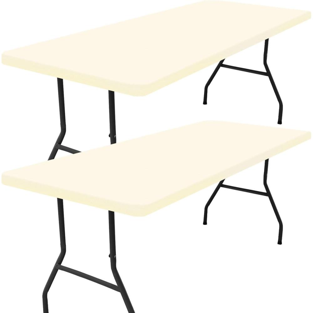 Smiry 2 Pack Rectangle Picnic Table Cloth, Waterproof Elastic Fitted Tablecloths, Washable Polyester Rectangular Patio Table Cover for Camping, Indoor and Outdoor (Black, 30"x72")(Beige)