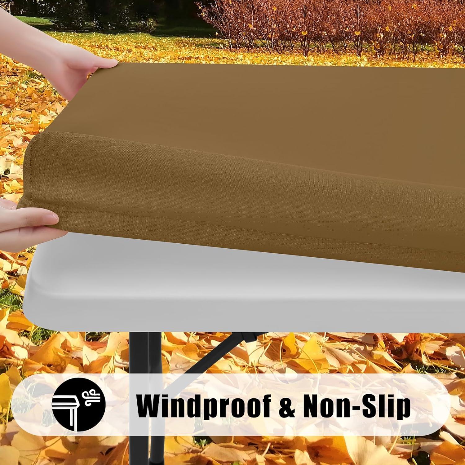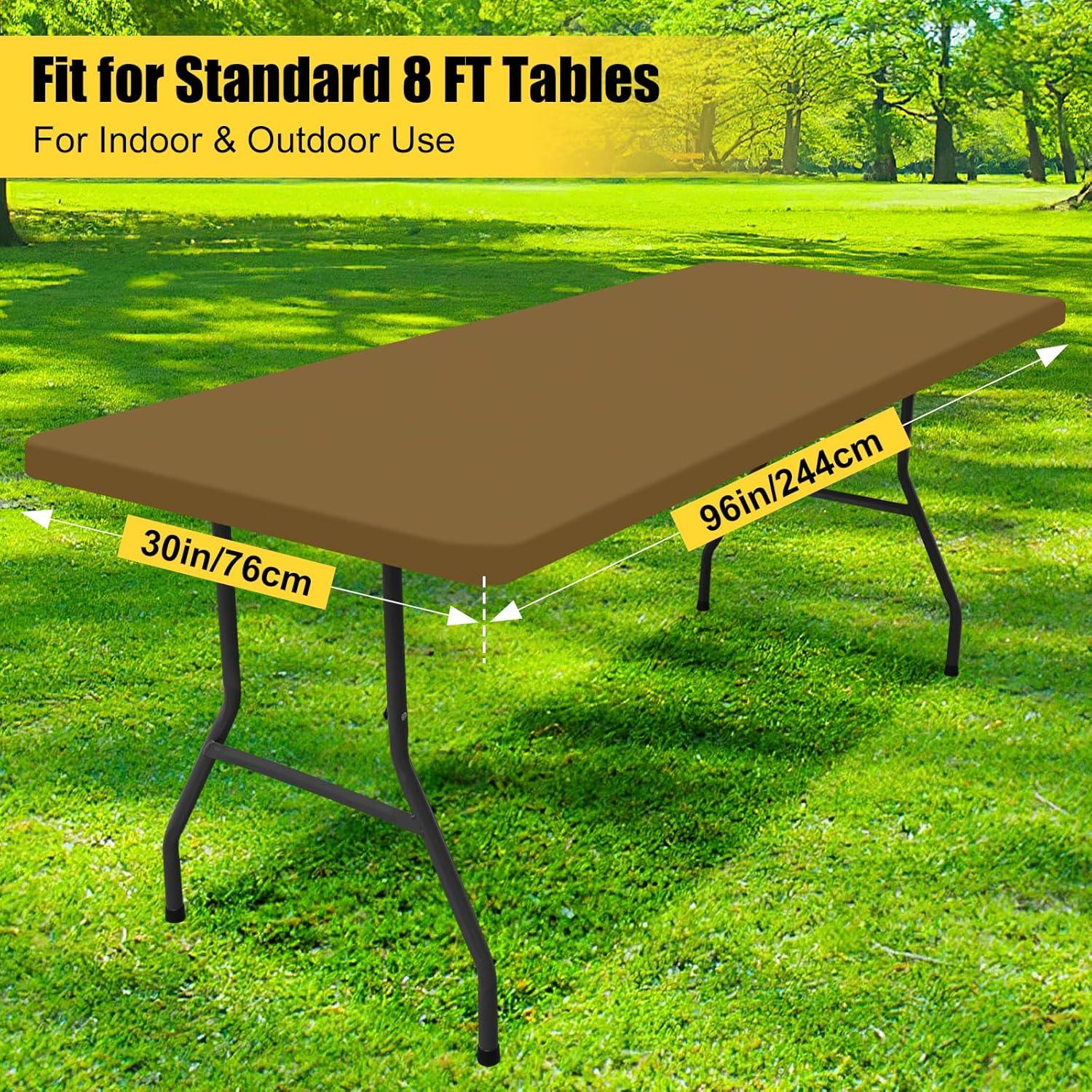 Smiry 2 Pack Rectangle Picnic Table Cloth, Waterproof Elastic Fitted Tablecloths, Washable Polyester Rectangular Patio Table Cover for Camping, Indoor and Outdoor (Black, 30″x72″)(Brown)
