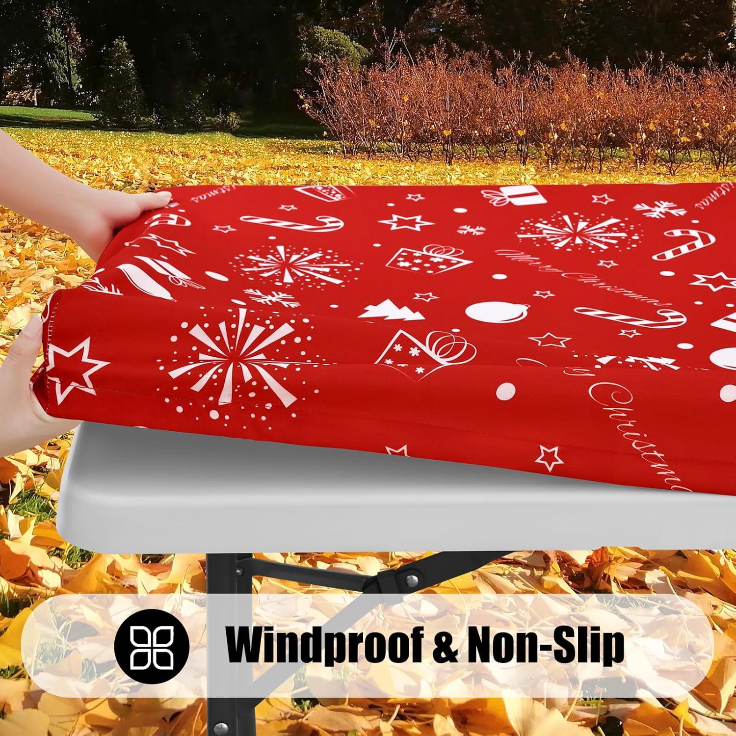 Smiry 2 Pack Rectangle Picnic Table Cloth, Waterproof Elastic Fitted Tablecloths, Washable Polyester Rectangular Patio Table Cover for Camping, Indoor and Outdoor (Black, 30"x72")(Christmas Red)