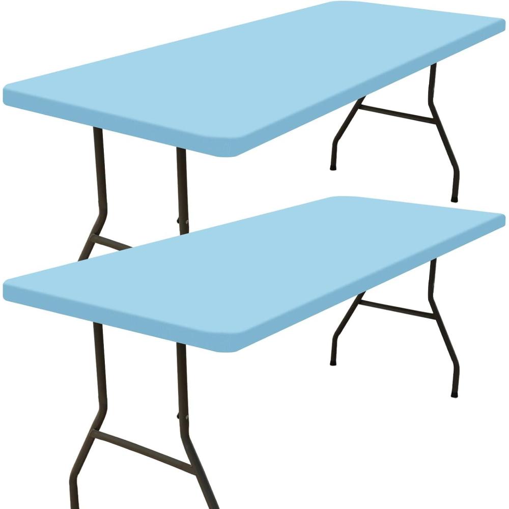 Smiry 2 Pack Rectangle Picnic Table Cloth, Waterproof Elastic Fitted Tablecloths, Washable Polyester Rectangular Patio Table Cover for Camping, Indoor and Outdoor (Black, 30"x72")(Light Blue)