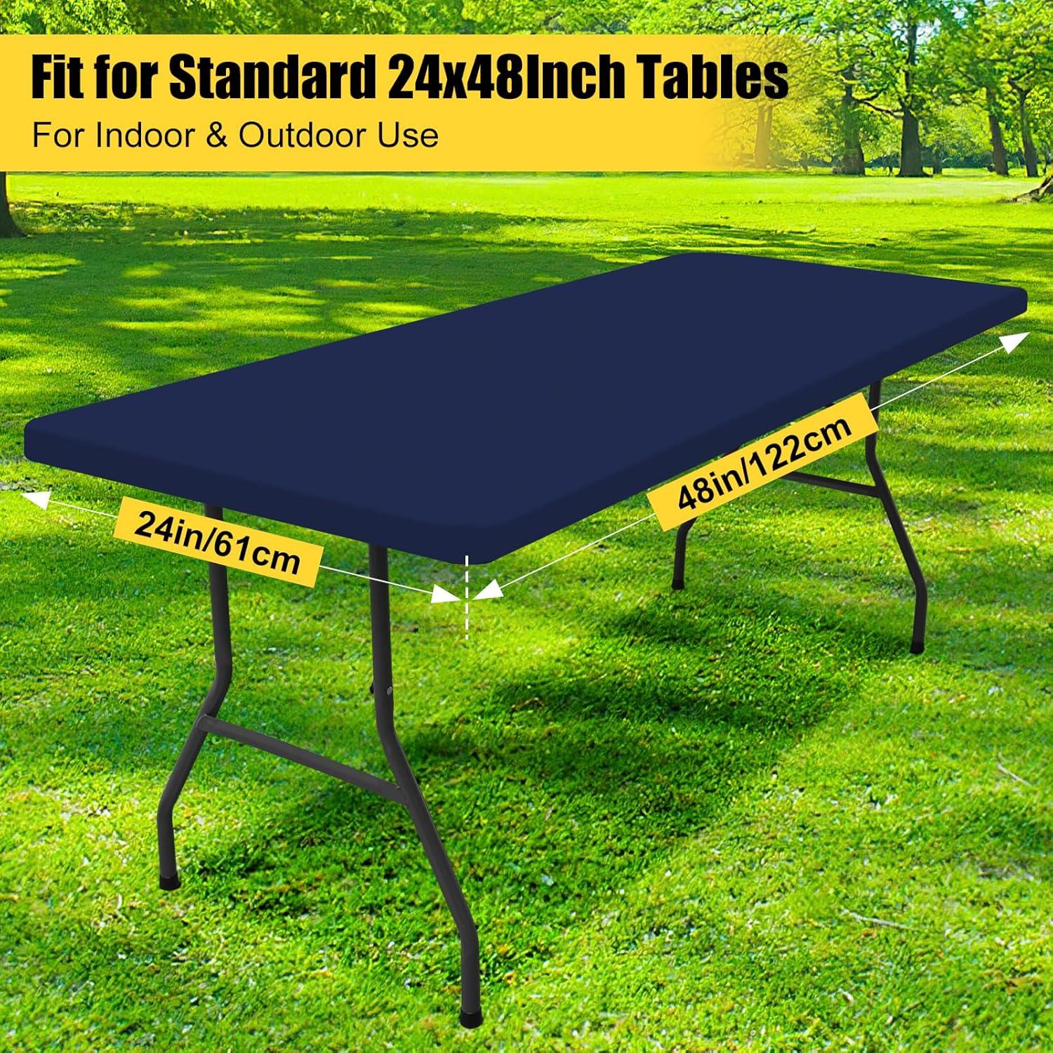 Smiry 2 Pack Rectangle Picnic Table Cloth, Waterproof Elastic Fitted Tablecloths, Washable Polyester Rectangular Patio Table Cover for Camping, Indoor and Outdoor (Black, 30"x72")(Navy)