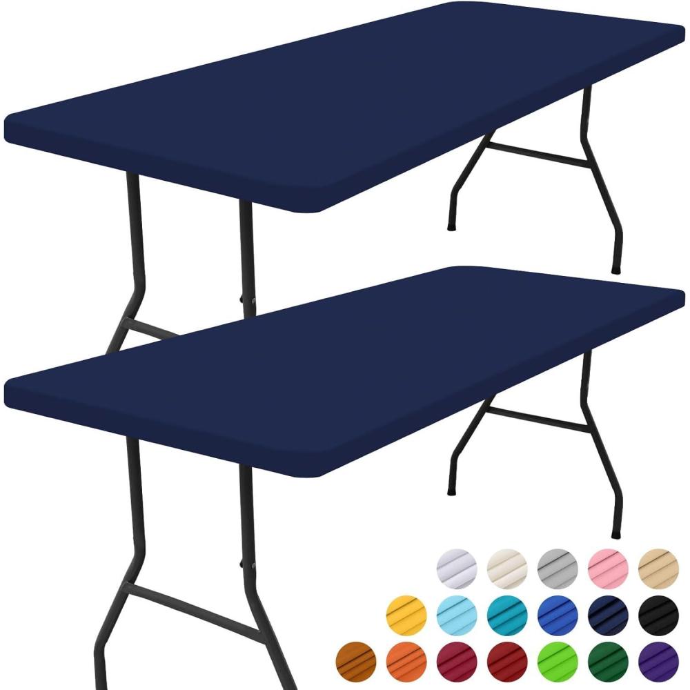 Smiry 2 Pack Rectangle Picnic Table Cloth, Waterproof Elastic Fitted Tablecloths, Washable Polyester Rectangular Patio Table Cover for Camping, Indoor and Outdoor (Black, 30″x72″)(Navy)