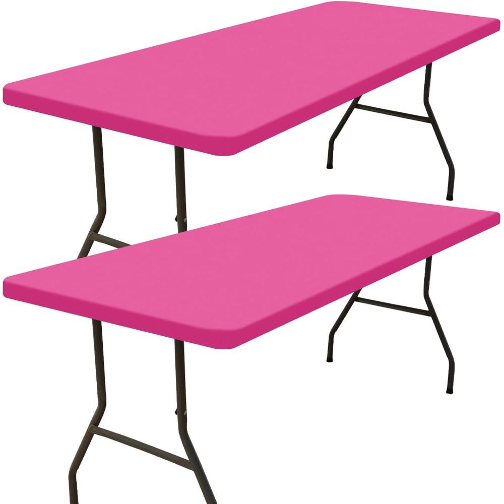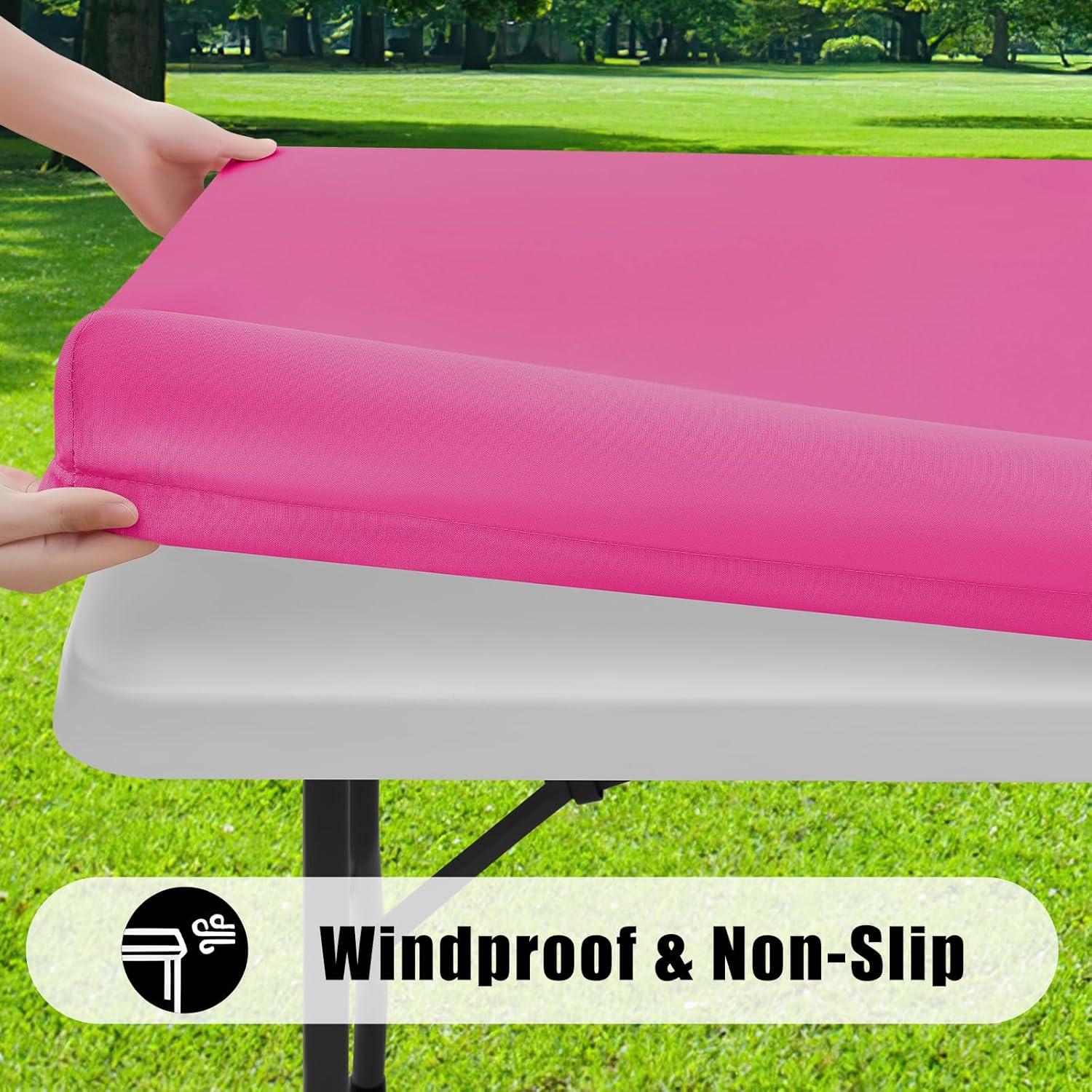 Smiry 2 Pack Rectangle Picnic Table Cloth, Waterproof Elastic Fitted Tablecloths, Washable Polyester Rectangular Patio Table Cover for Camping, Indoor and Outdoor (Black, 30"x72")(Rose Pink)