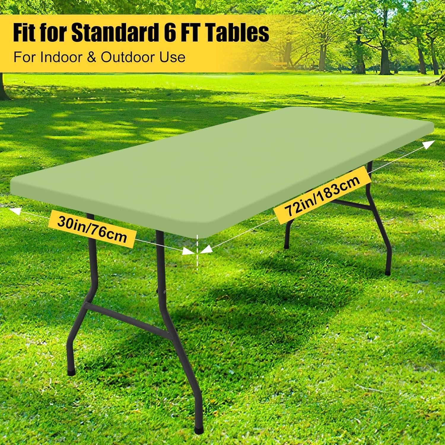 Smiry 2 Pack Rectangle Picnic Table Cloth, Waterproof Elastic Fitted Tablecloths, Washable Polyester Rectangular Patio Table Cover for Camping, Indoor and Outdoor (Black, 30"x72")(Sage Green)