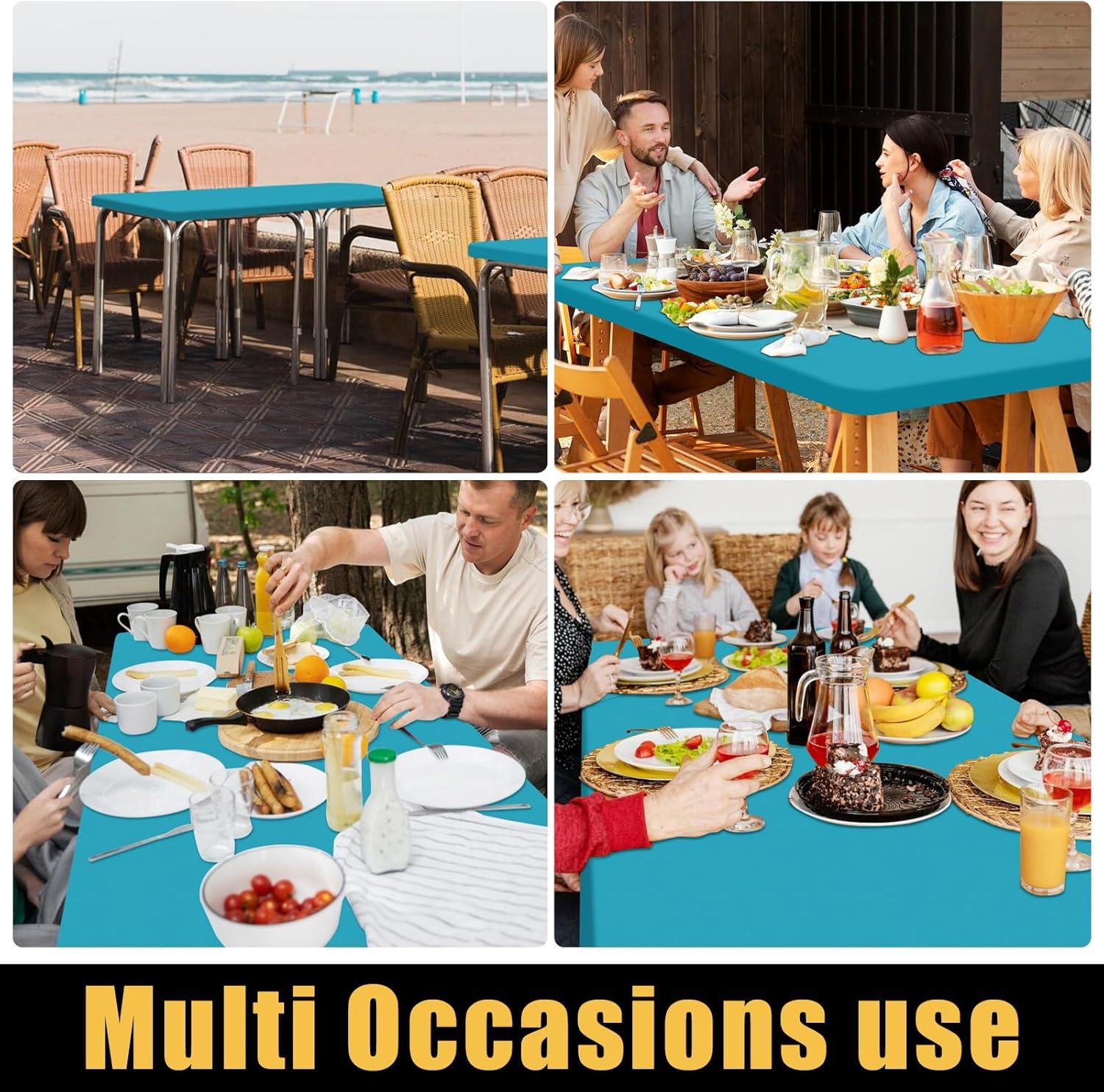 Smiry 2 Pack Rectangle Picnic Table Cloth, Waterproof Elastic Fitted Tablecloths, Washable Polyester Rectangular Patio Table Cover for Camping, Indoor and Outdoor (Black, 30"x72")(Teal)