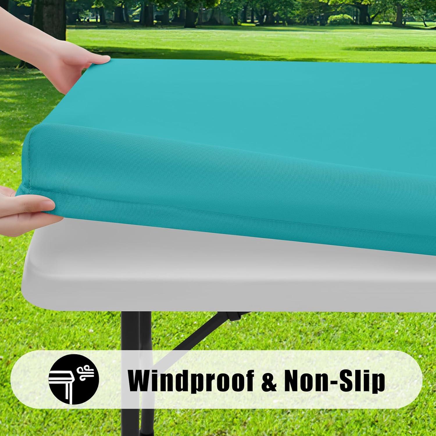 Smiry 2 Pack Rectangle Picnic Table Cloth, Waterproof Elastic Fitted Tablecloths, Washable Polyester Rectangular Patio Table Cover for Camping, Indoor and Outdoor (Black, 30"x72")(Turquoise)