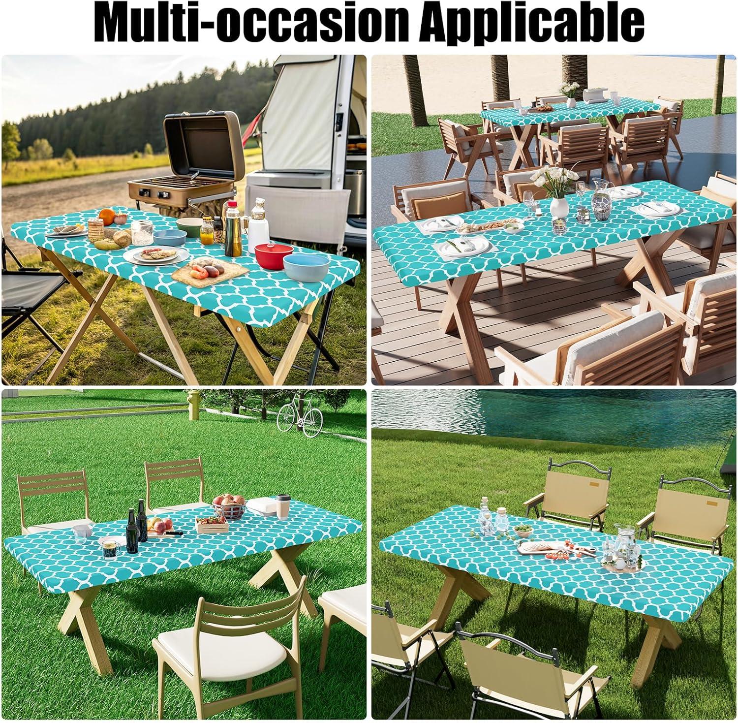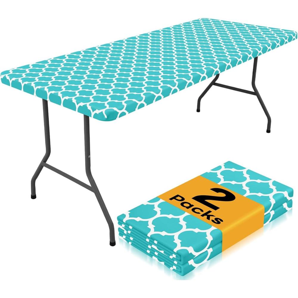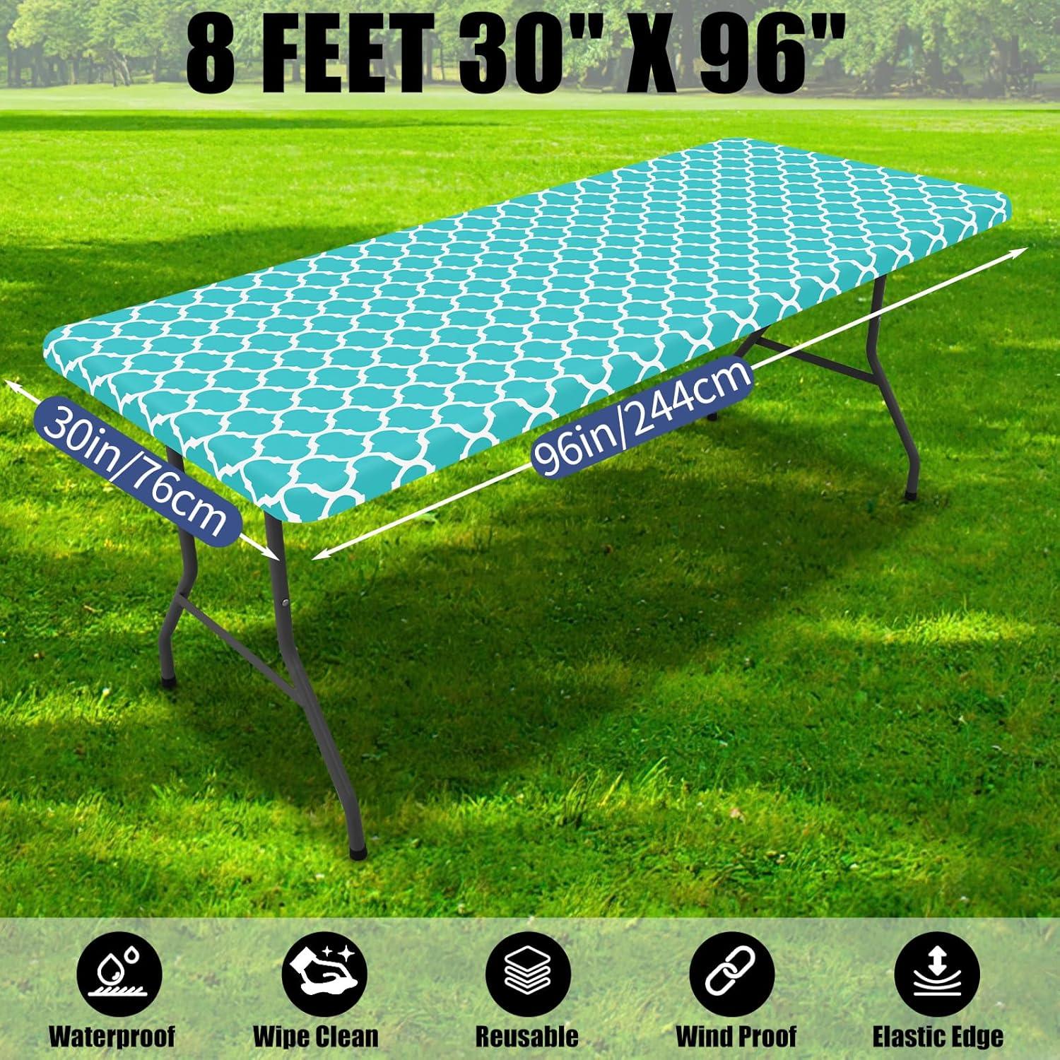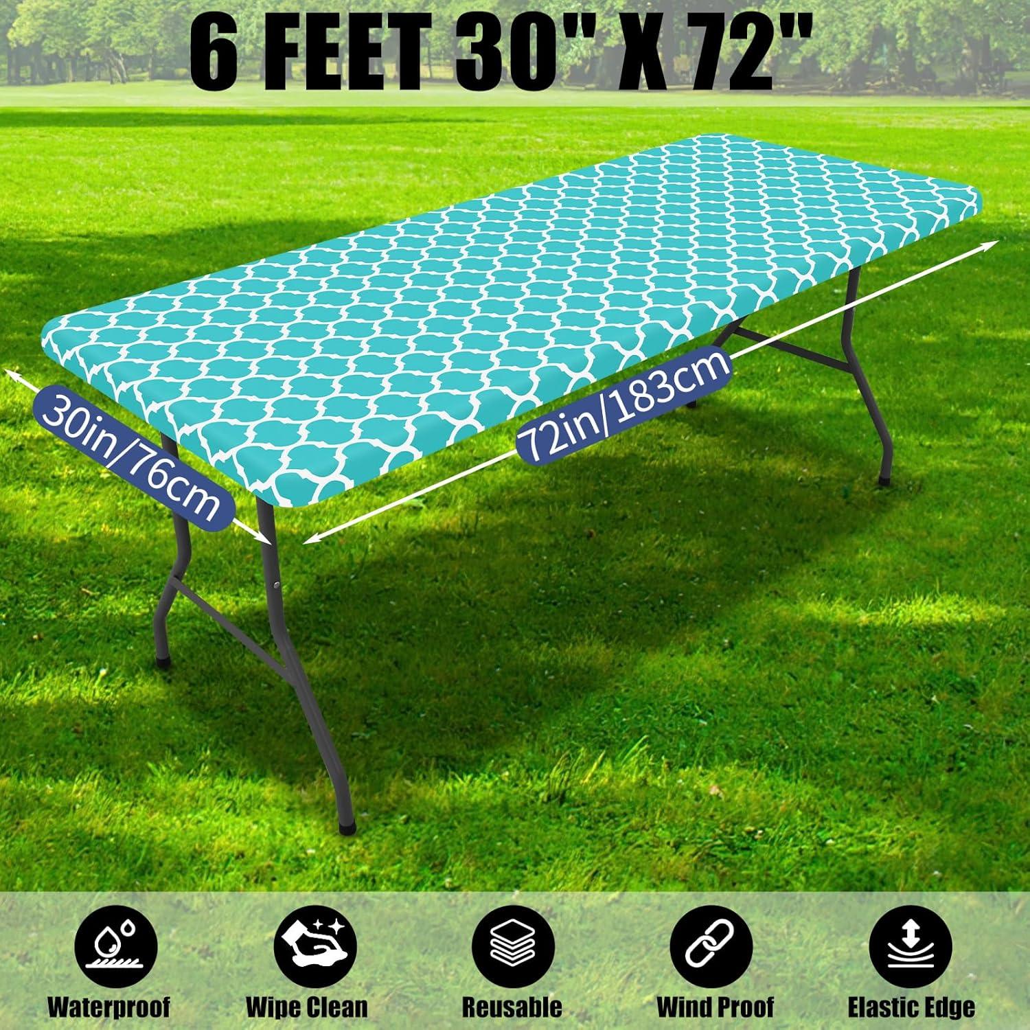 Smiry 2 Pack Rectangle Table Cloth 6 Foot, Waterproof Elastic Fitted Tablecloths, Windproof Washable Polyester Table Cover for Picnic, Camping, Outdoor (Grey, 30"x72")(Aqua)
