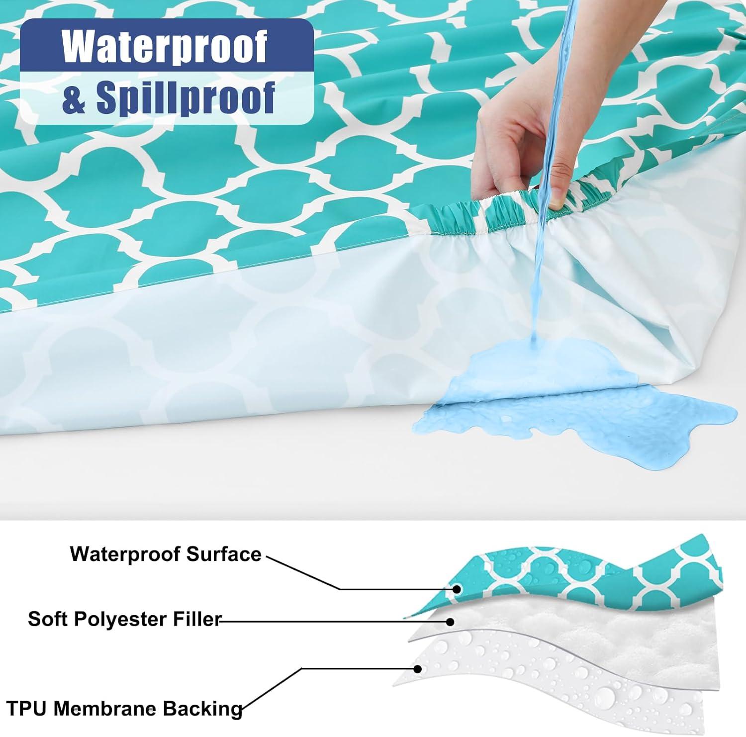 [Waterproof & Spillproof] Our table cloths features waterproof surface and TPU-backed design, delivering exceptional protection from leaks, stains, and wear, no matter which side you choose to use.