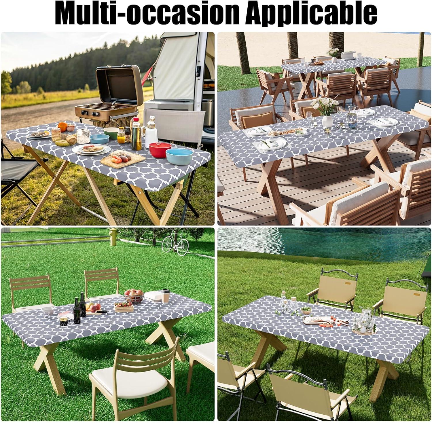 [Windproof & Non-Slip] This picnic tablecloths with elastic edges ensures that the cover stays firmly in place. No more worrying about it blowing away—enjoy a hassle-free meal outdoors.