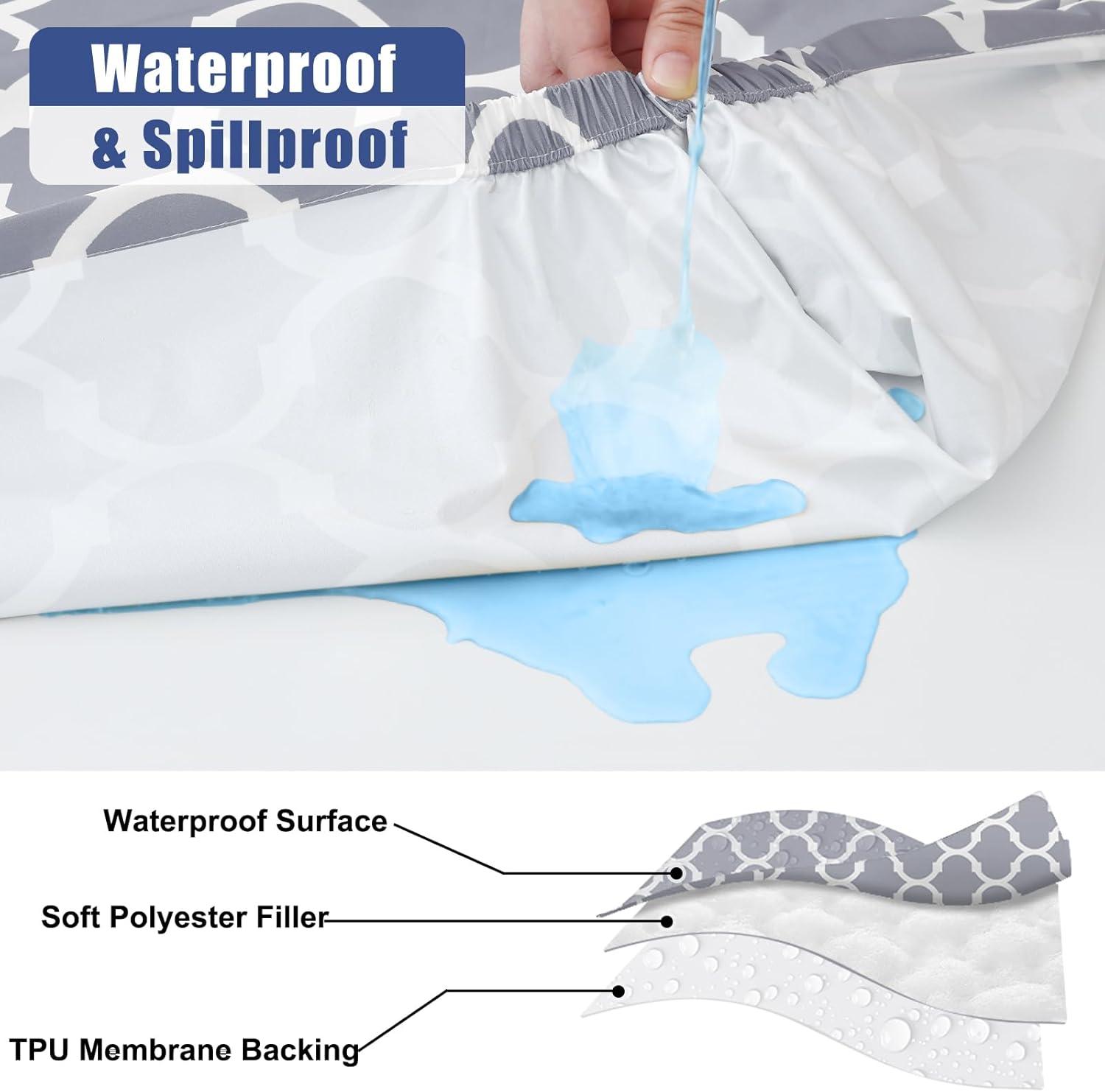 [Waterproof & Spillproof] Our table cloths features waterproof surface and TPU-backed design, delivering exceptional protection from leaks, stains, and wear, no matter which side you choose to use.