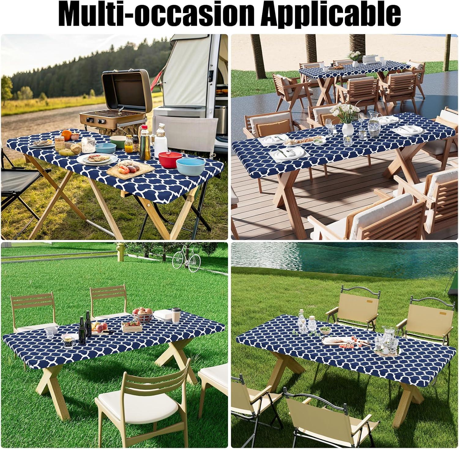 [Windproof & Non-Slip] This picnic tablecloths with elastic edges ensures that the cover stays firmly in place. No more worrying about it blowing away—enjoy a hassle-free meal outdoors.