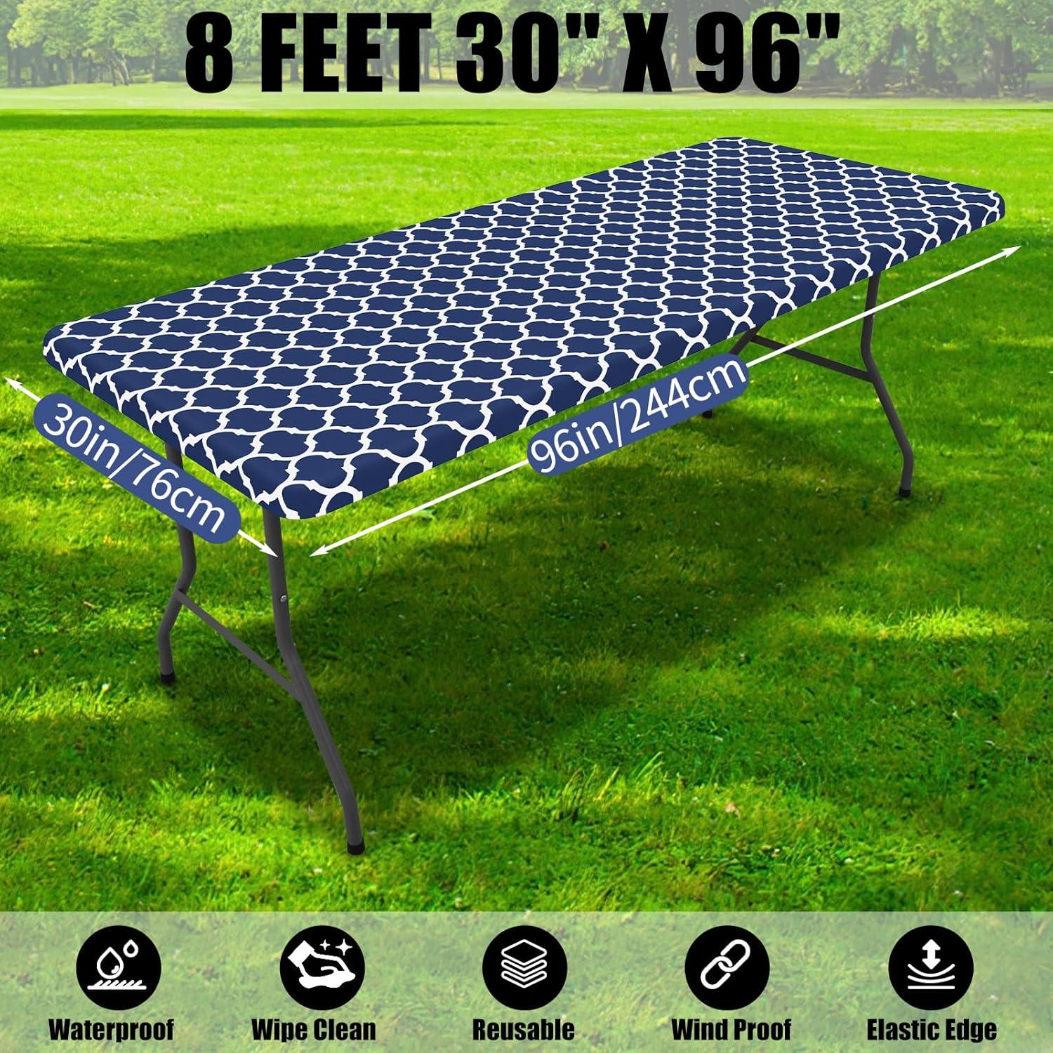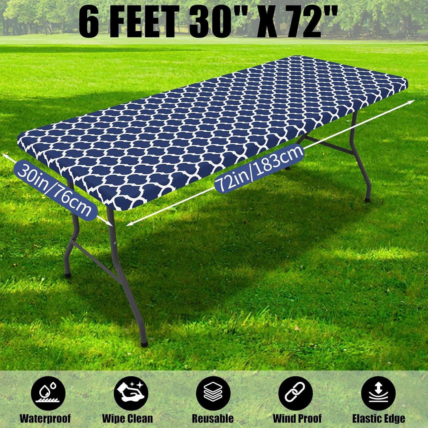 Smiry 2 Pack Rectangle Table Cloth 6 Foot, Waterproof Elastic Fitted Tablecloths, Windproof Washable Polyester Table Cover for Picnic, Camping, Outdoor (Grey, 30"x72")(Navy)