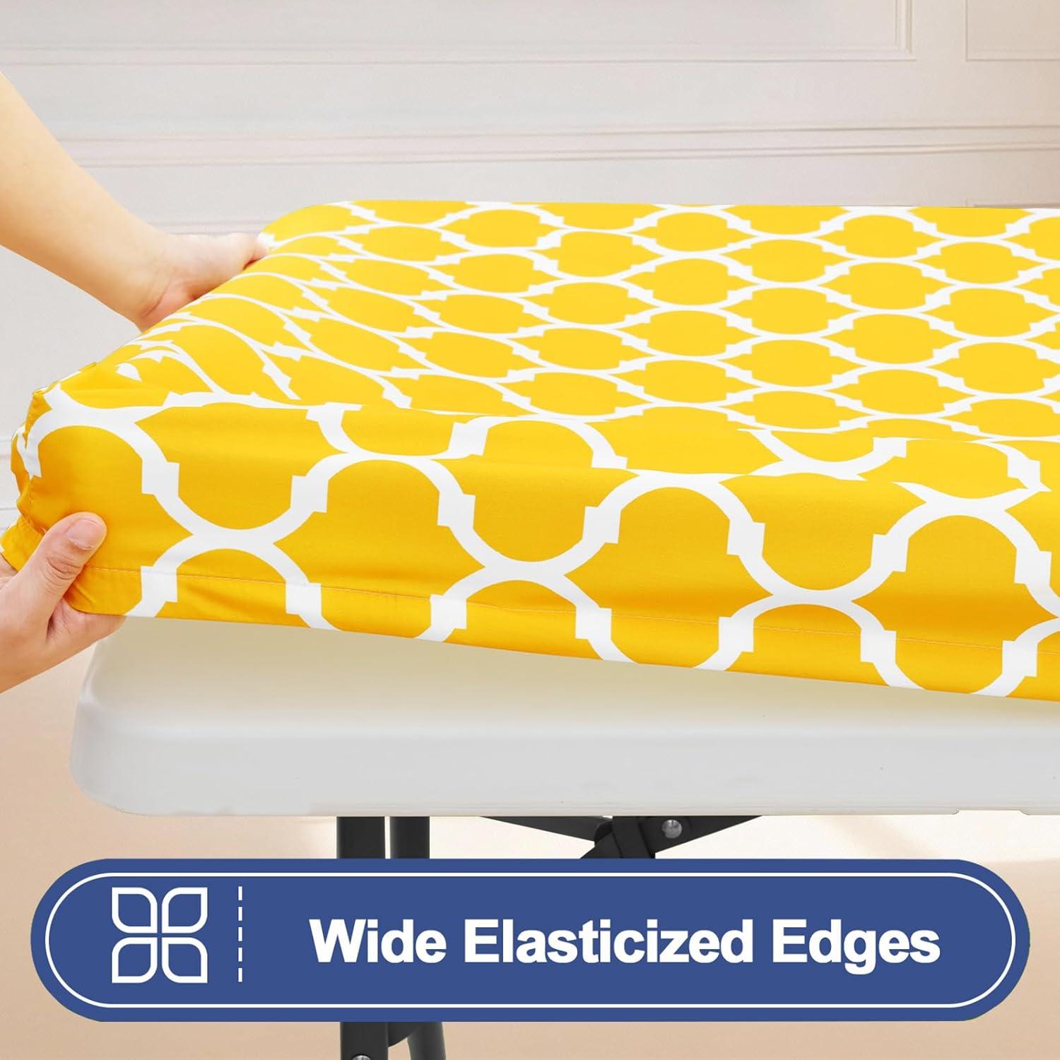Smiry 2 Pack Rectangle Table Cloth 6 Foot, Waterproof Elastic Fitted Tablecloths, Windproof Washable Polyester Table Cover for Picnic, Camping, Outdoor (Grey, 30"x72")(Yellow)