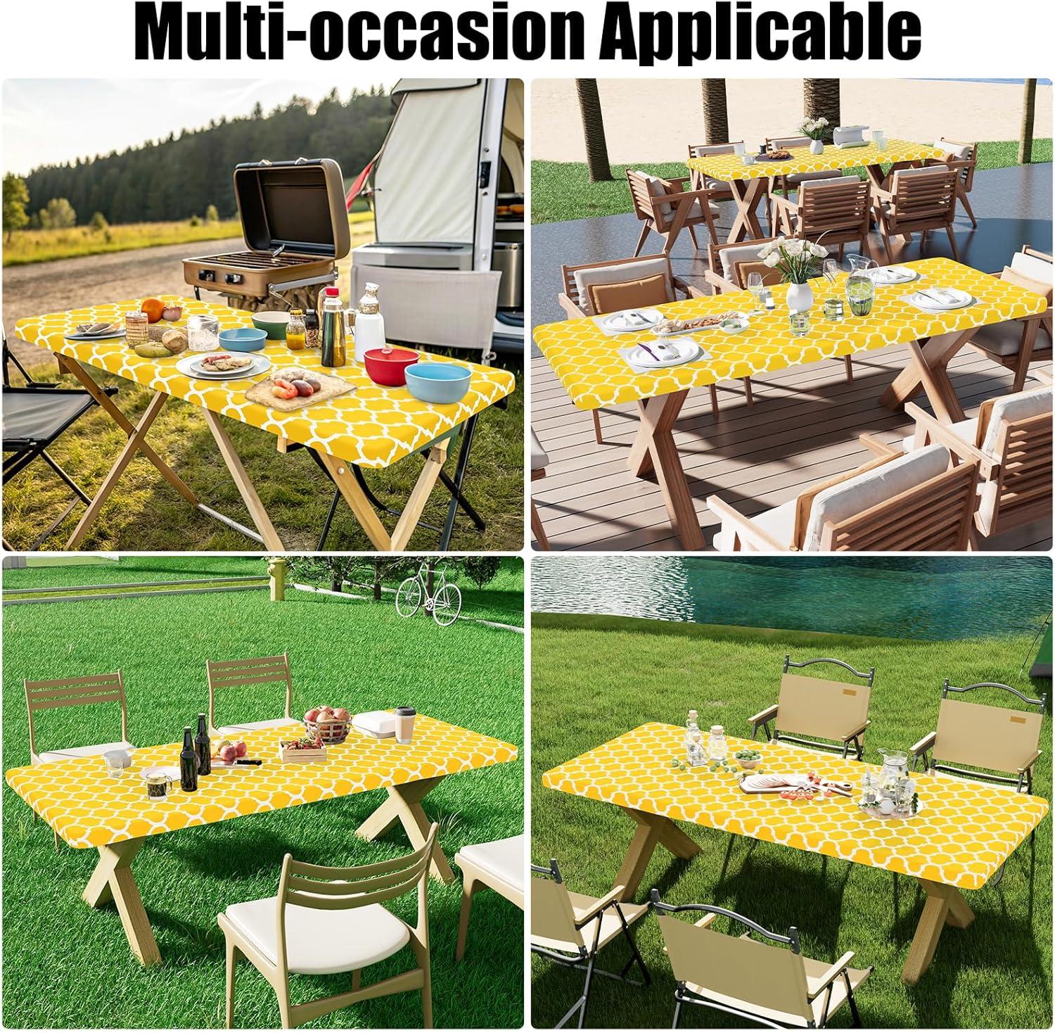 [Windproof & Non-Slip] This picnic tablecloths with elastic edges ensures that the cover stays firmly in place. No more worrying about it blowing away—enjoy a hassle-free meal outdoors.
