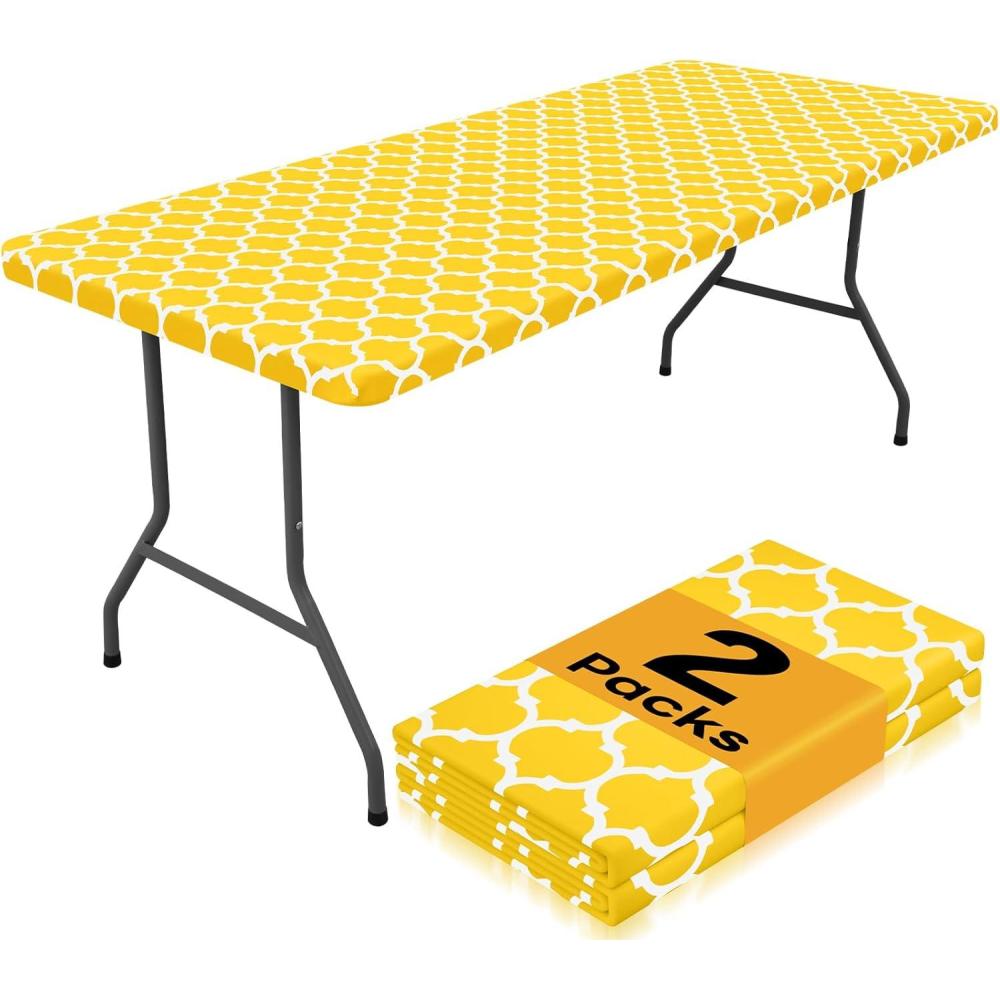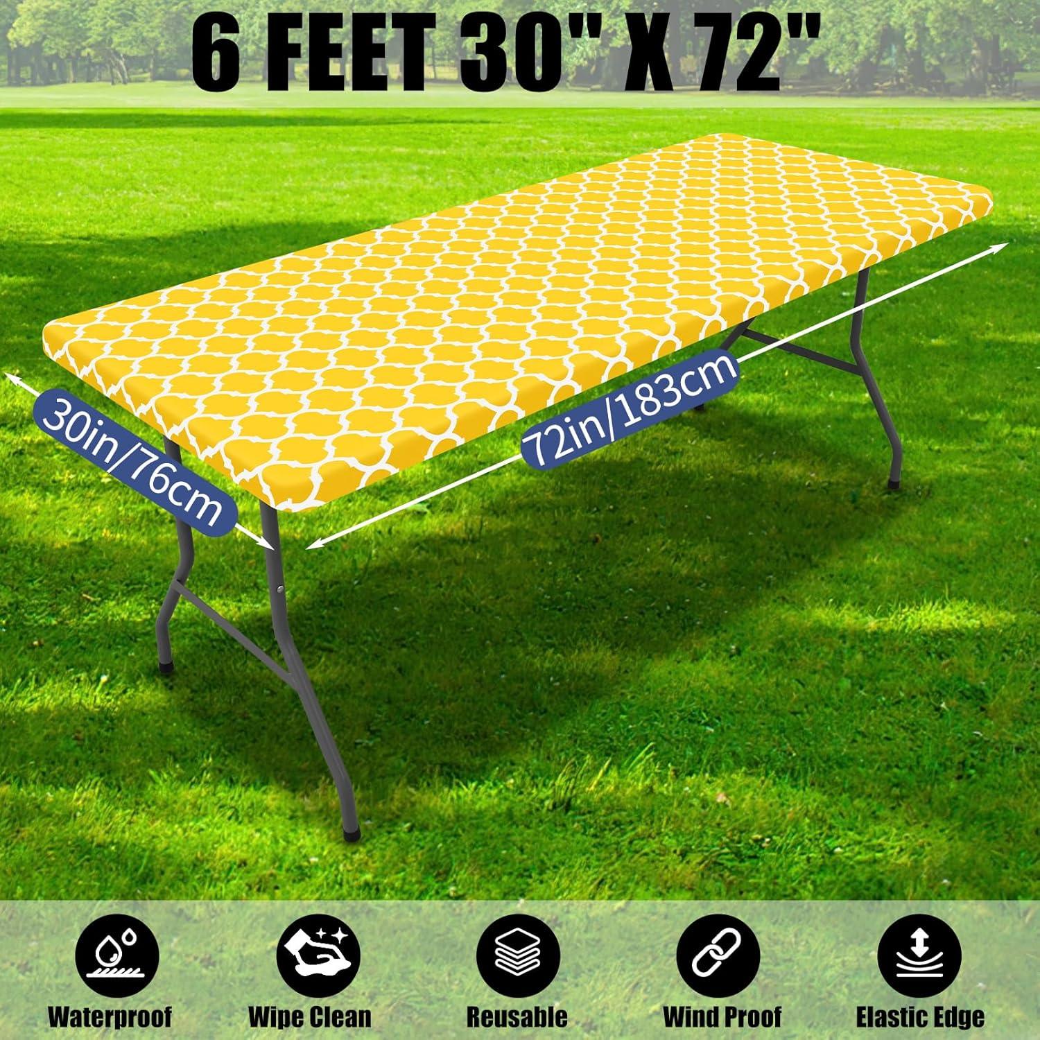 imageSmiry 2 Pack Rectangle Table Cloth 6 Foot Waterproof Elastic Fitted Tablecloths Windproof Washable Polyester Table Cover for Picnic Camping Outdoor Grey 30quotx72quotYellow