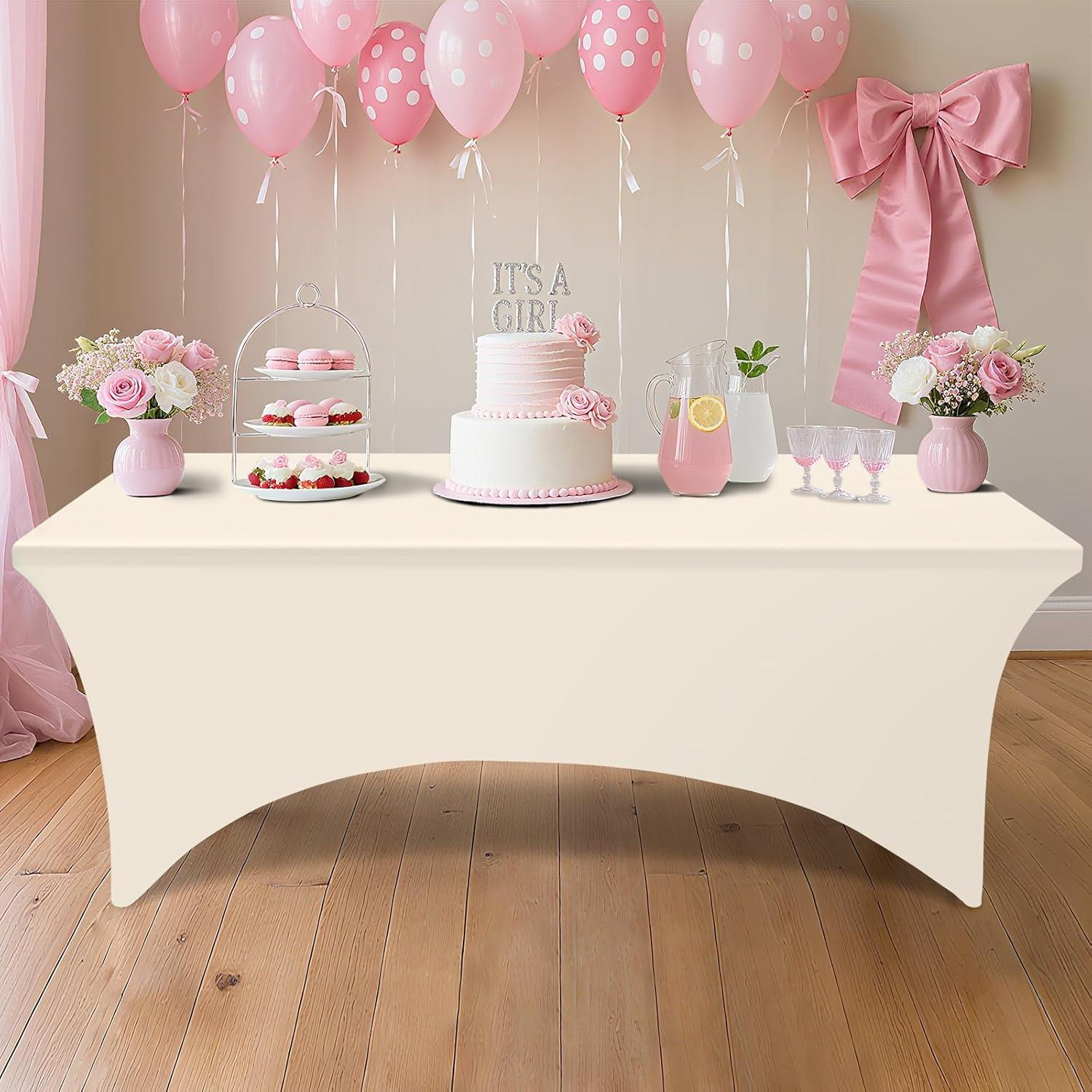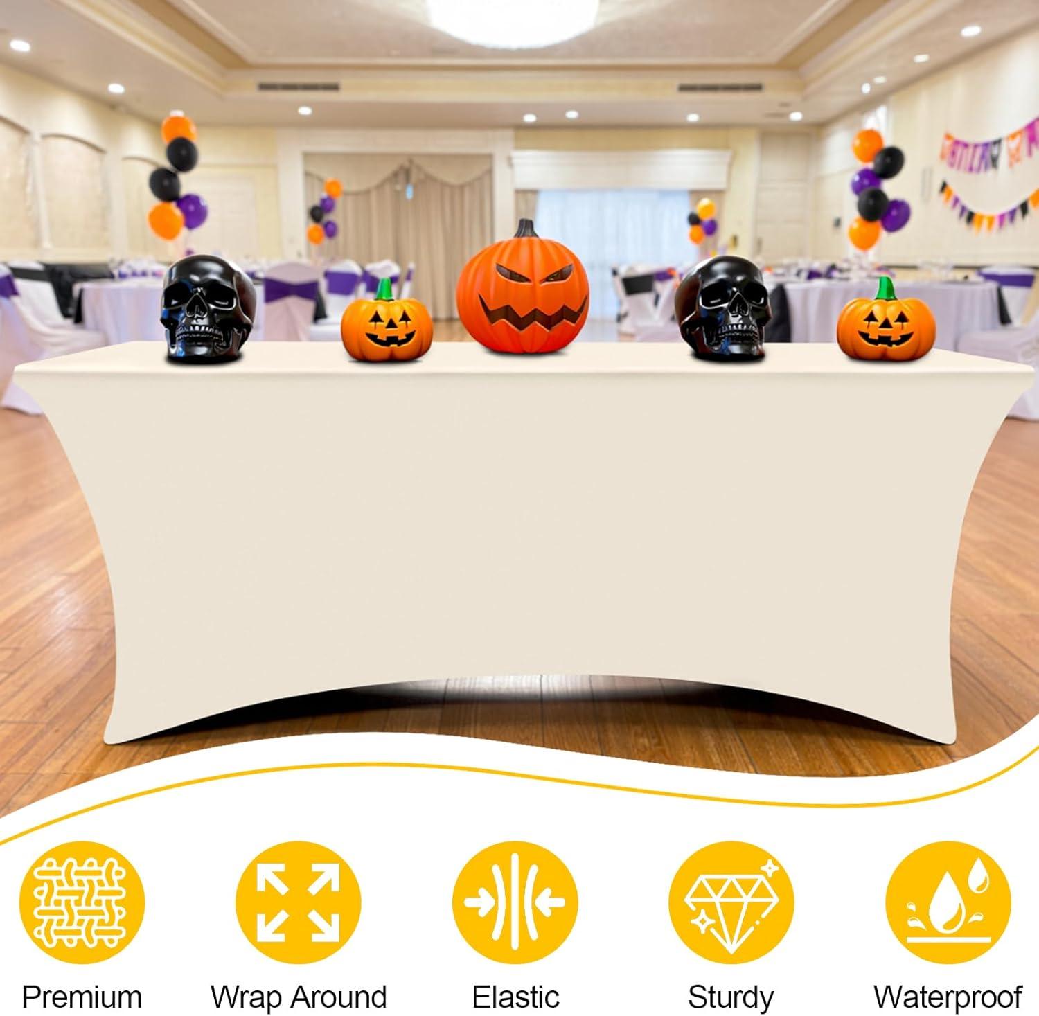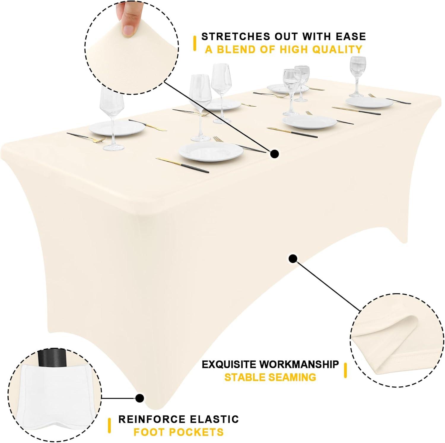 [Elastic & Full Coverage] Smiry elastic tablecloth is made of high-quality 90% polyester and 10% spandex, offering excellent stretchability. Its unique design features four elastic leg pockets that securely accommodate folding table legs, ensuring complete coverage of every part of the rectangular table.