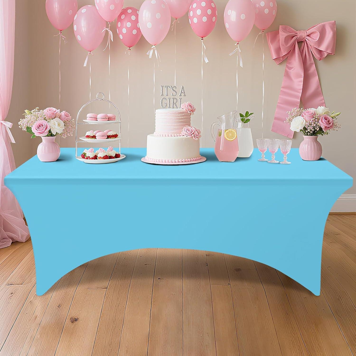 Smiry 2 Pack Spandex Table Cloth 6FT, Elastic Fitted Stretch Tablecloths, Washable and Wrinkle Free Rectangular Patio Table Cover for Outdoor, Wedding, Banquet & Parties (Navy, 72Lx30Wx30H Inch)(Blue Mist)