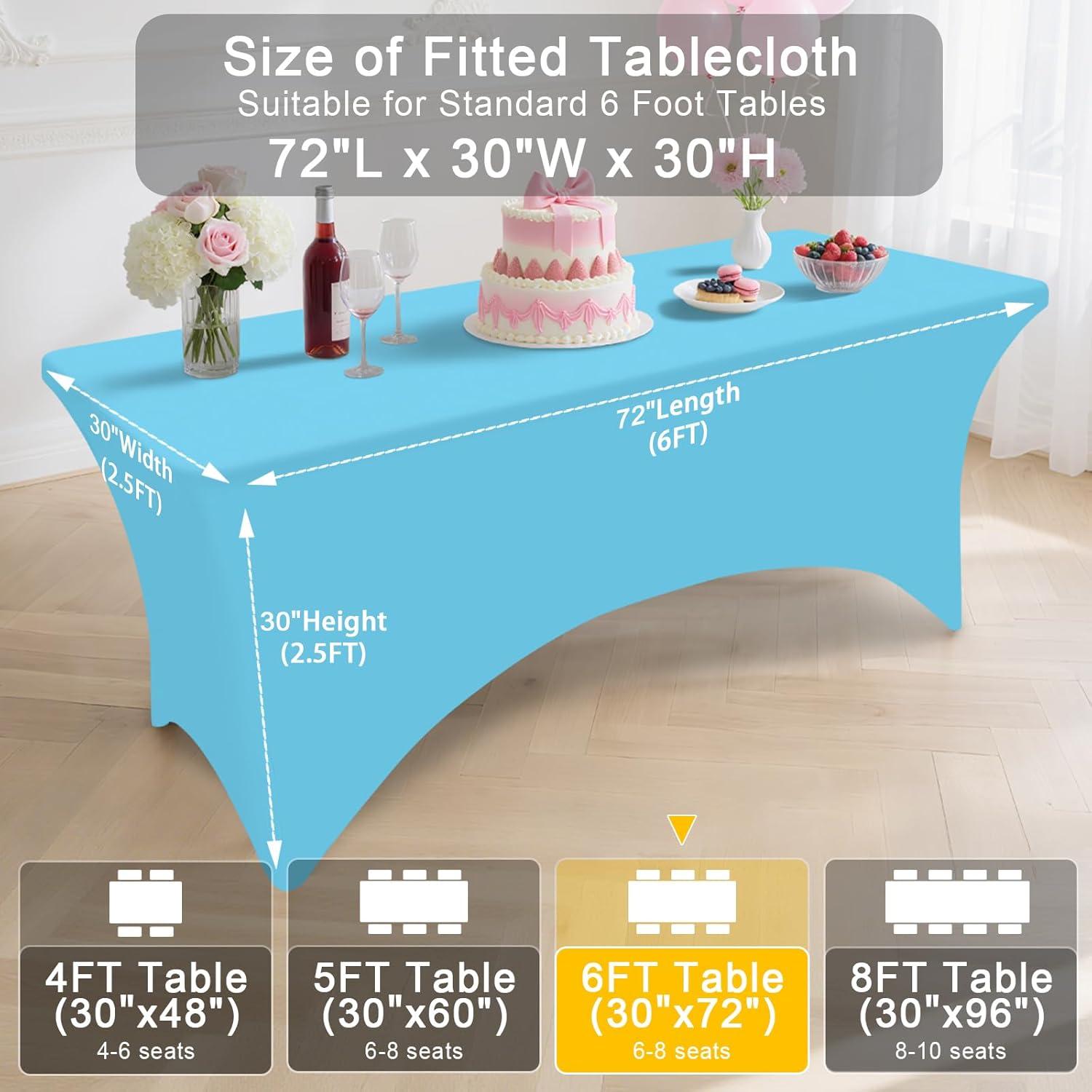 [Measurement] Our tablecloth dimensions for a 6-foot table are 72 inches in length, 30 inches in width, and 30 inches in height. Please measure your table to ensure you choose the appropriate size before making a purchase.