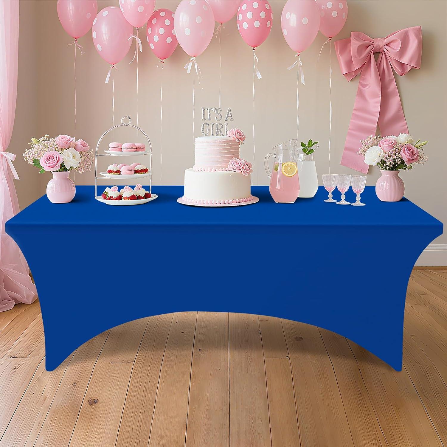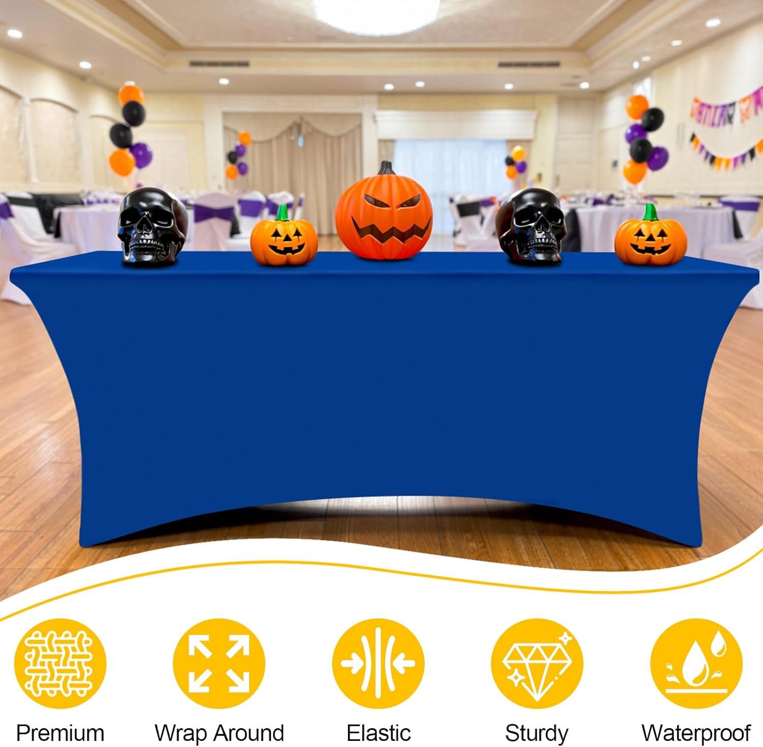 Smiry 2 Pack Spandex Table Cloth 6FT, Elastic Fitted Stretch Tablecloths, Washable and Wrinkle Free Rectangular Patio Table Cover for Outdoor, Wedding, Banquet & Parties (Navy, 72Lx30Wx30H Inch)(Blue)