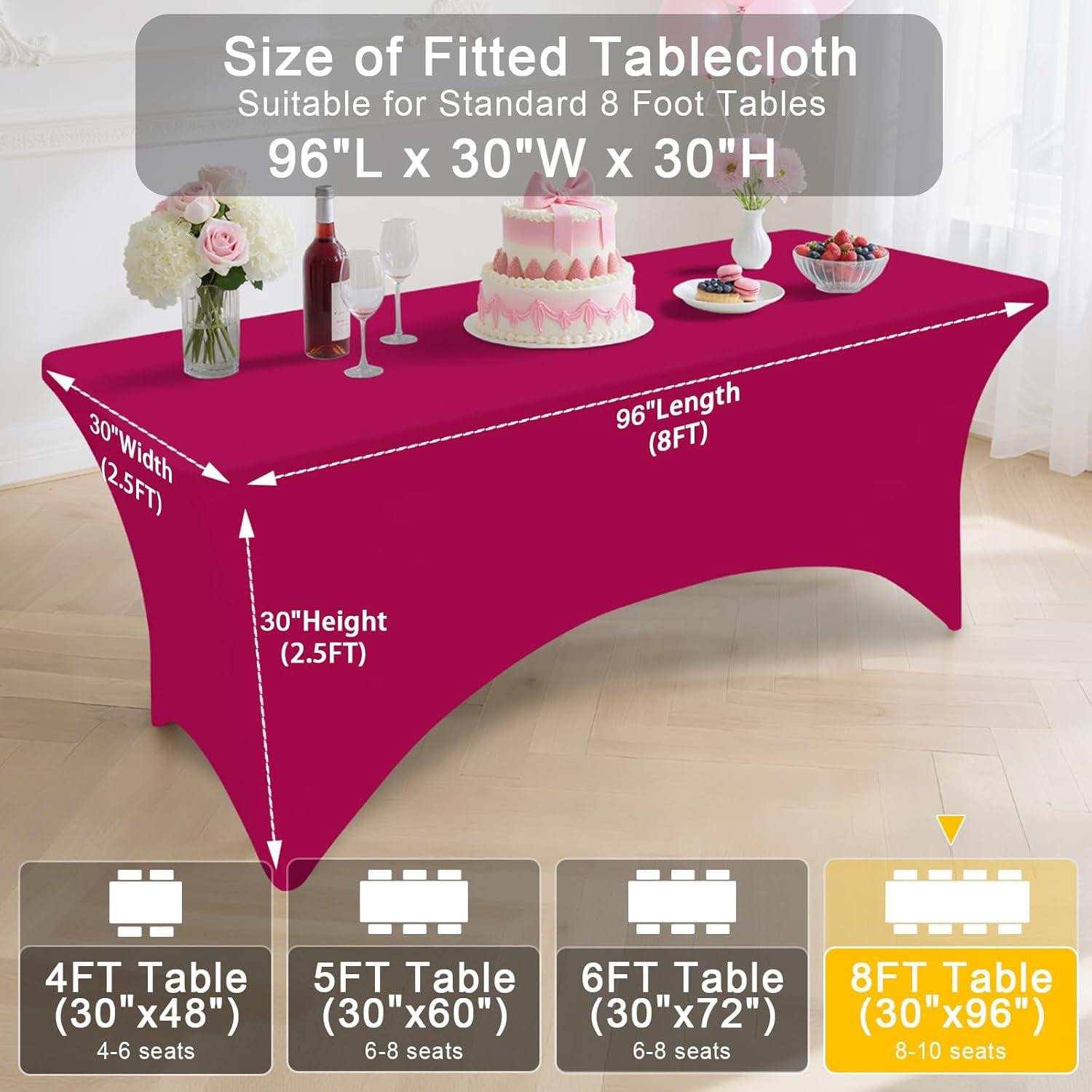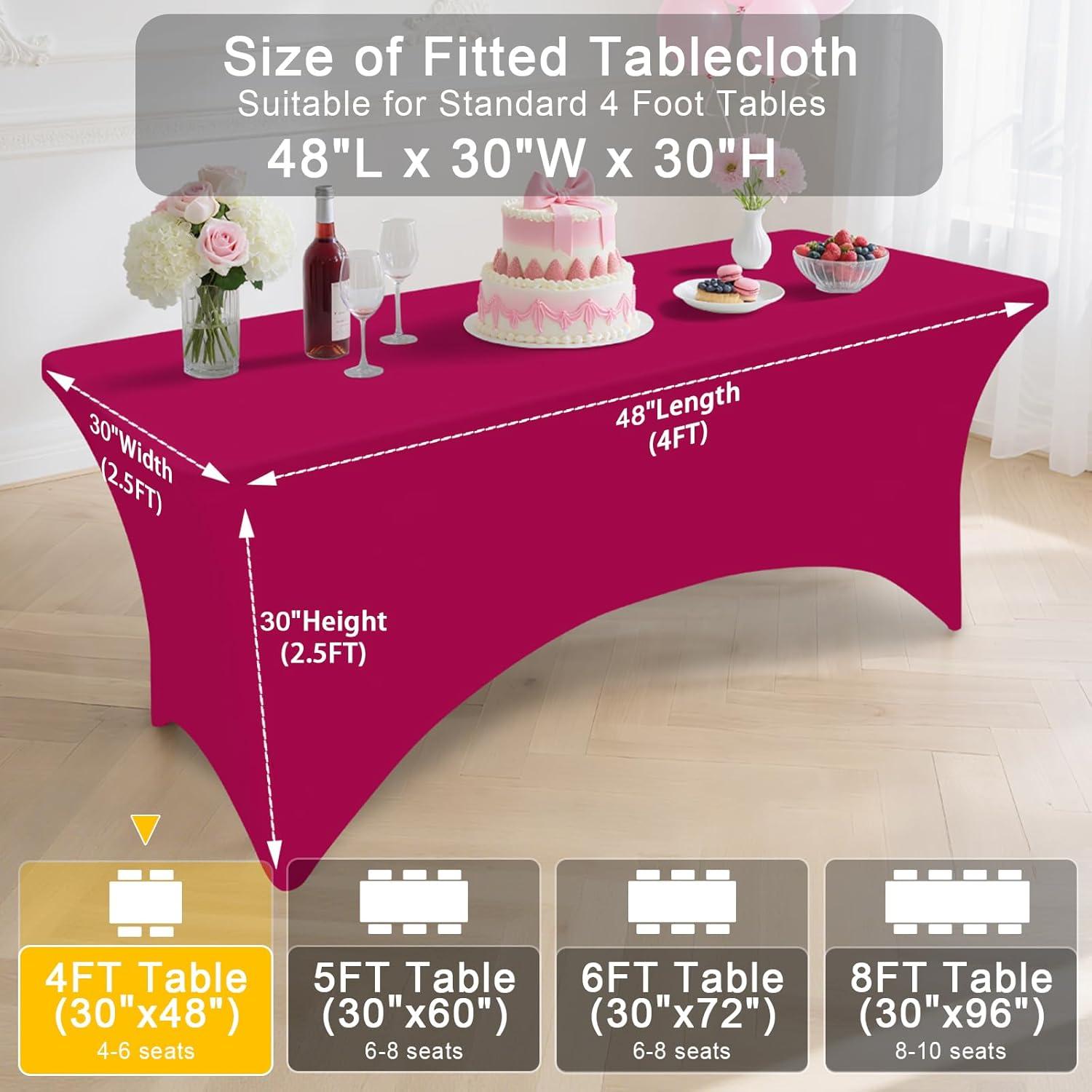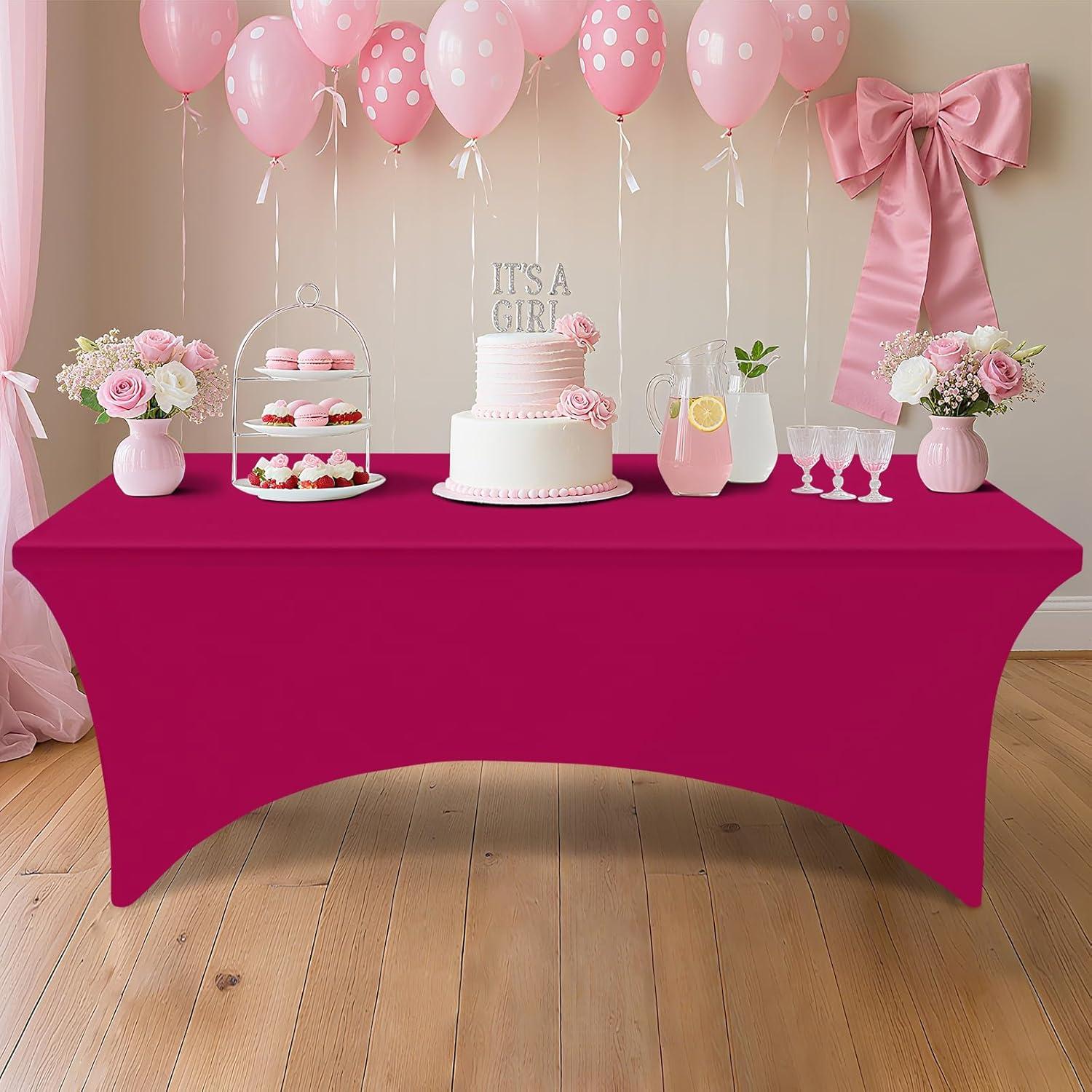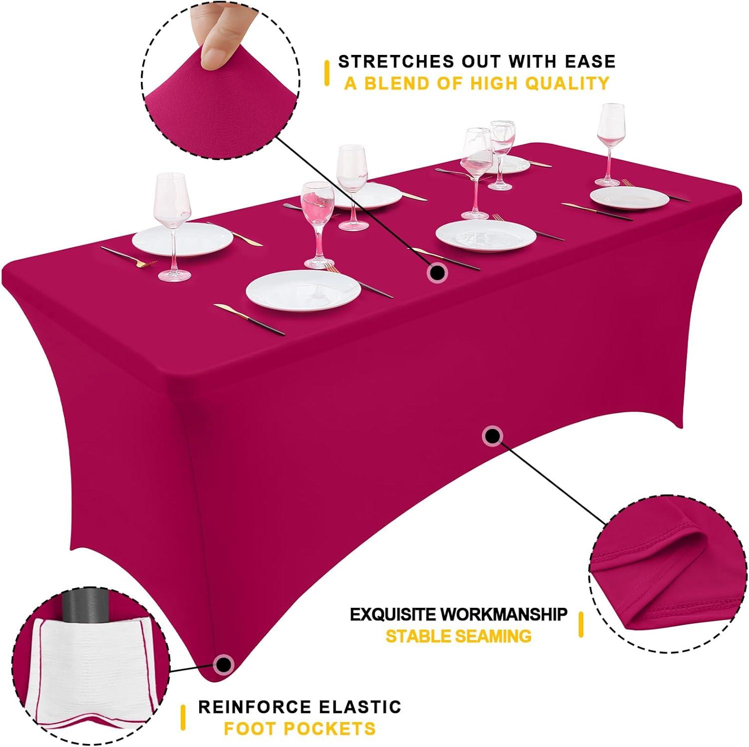 Smiry 2 Pack Spandex Table Cloth 6FT, Elastic Fitted Stretch Tablecloths, Washable and Wrinkle Free Rectangular Patio Table Cover for Outdoor, Wedding, Banquet & Parties (Navy, 72Lx30Wx30H Inch)(Fuchsia)