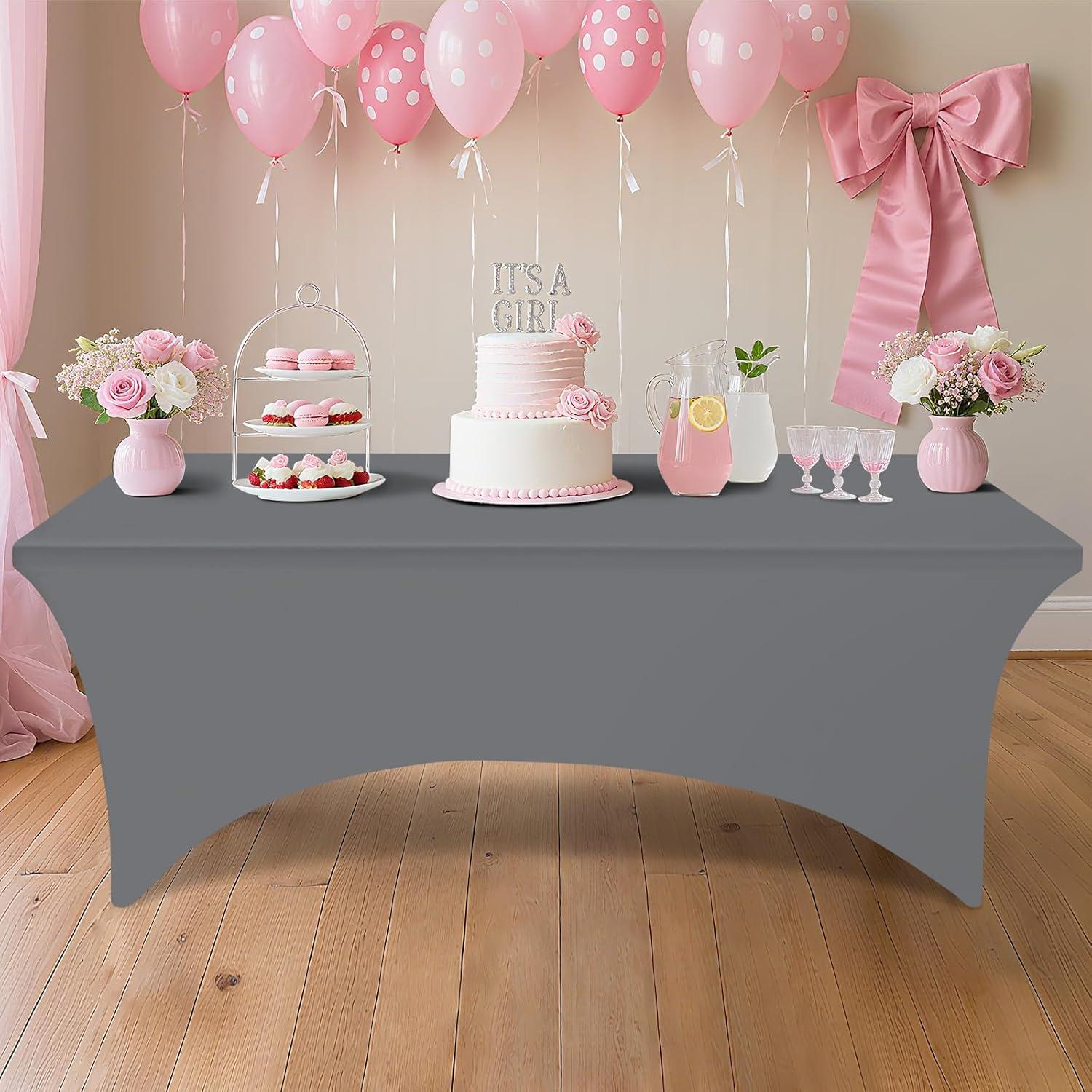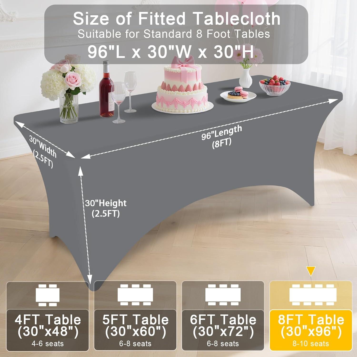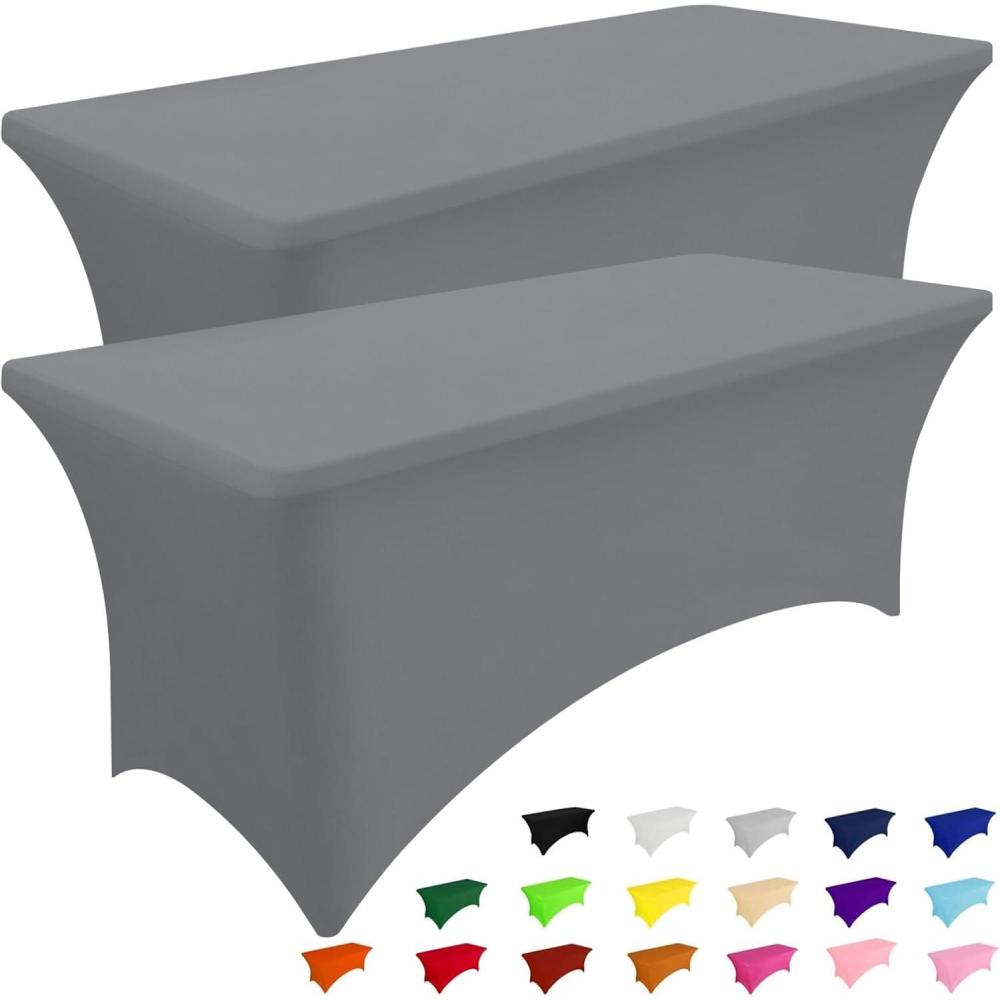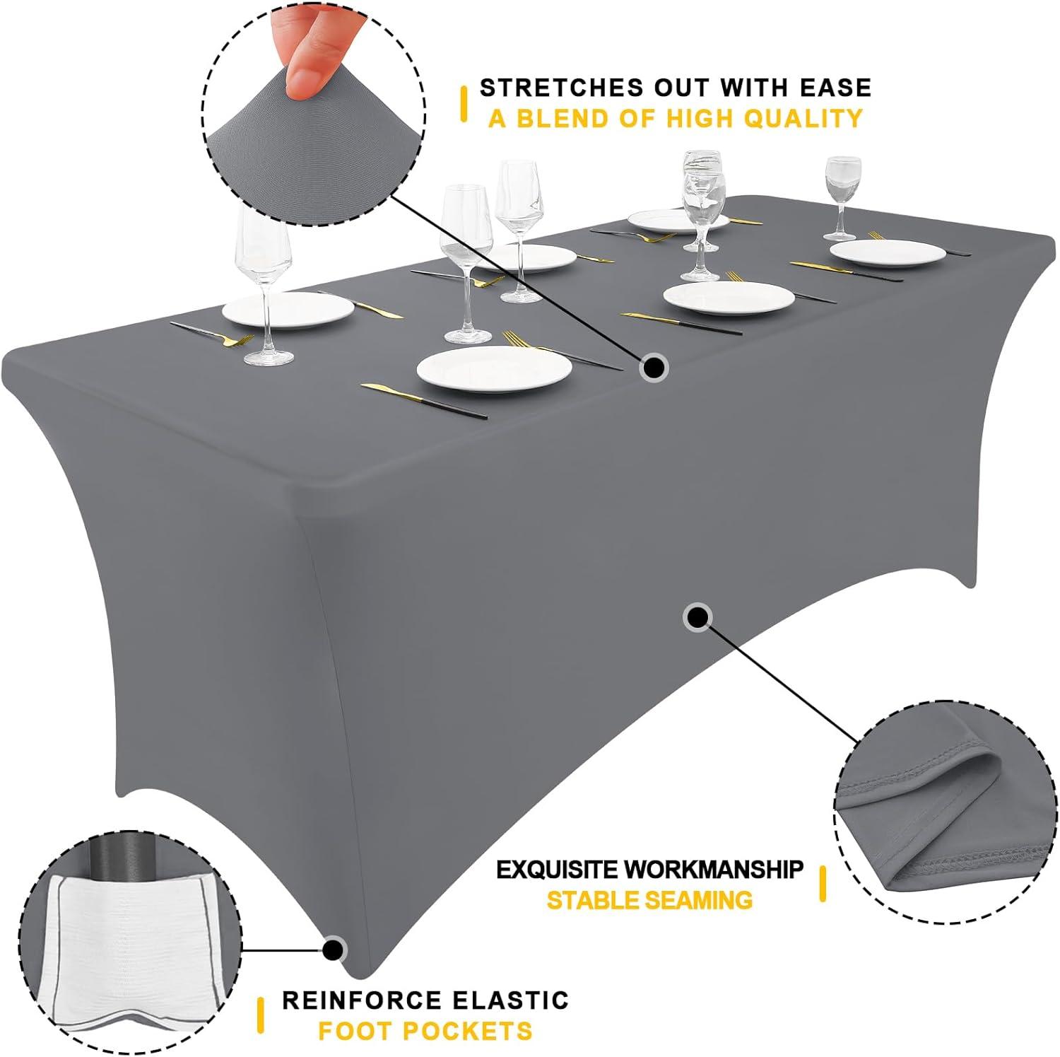 Smiry 2 Pack Spandex Table Cloth 6FT, Elastic Fitted Stretch Tablecloths, Washable and Wrinkle Free Rectangular Patio Table Cover for Outdoor, Wedding, Banquet & Parties (Navy, 72Lx30Wx30H Inch)(Grey)