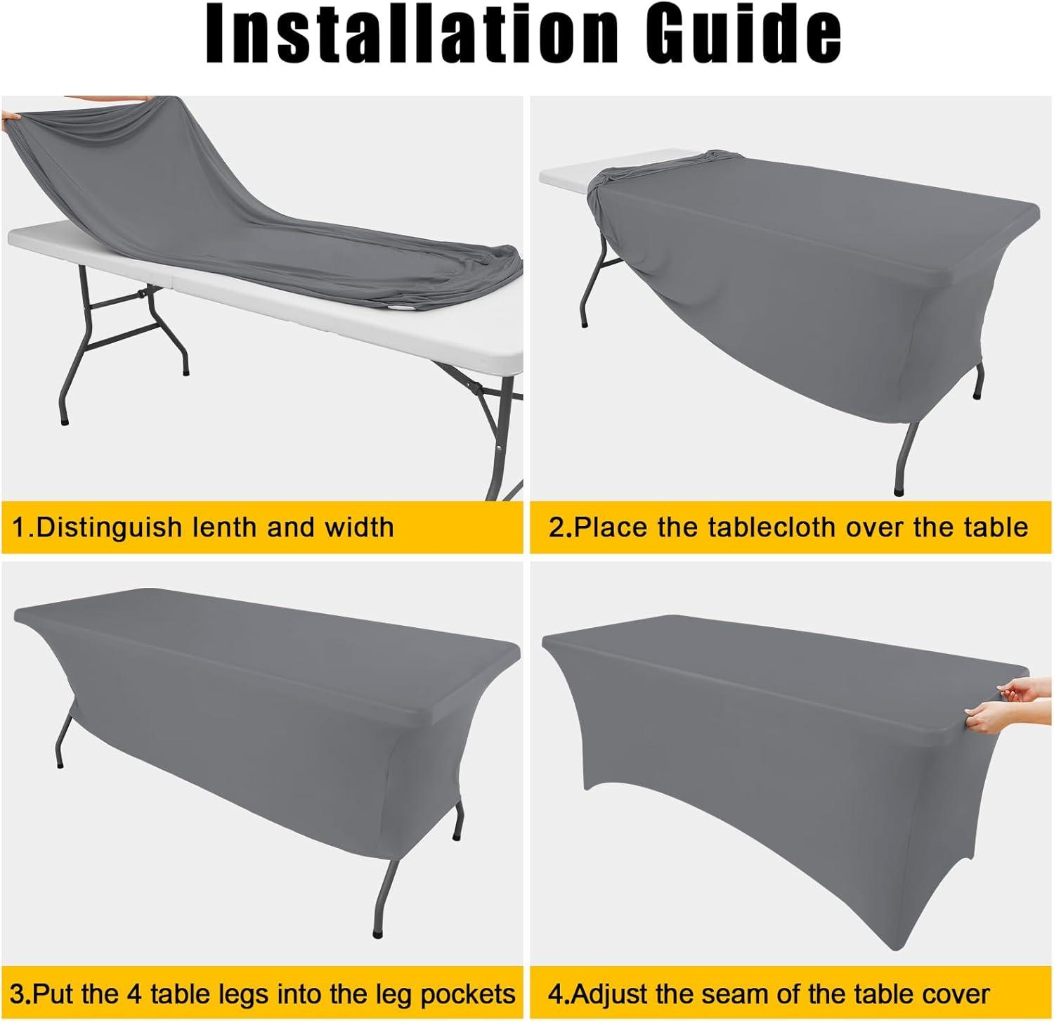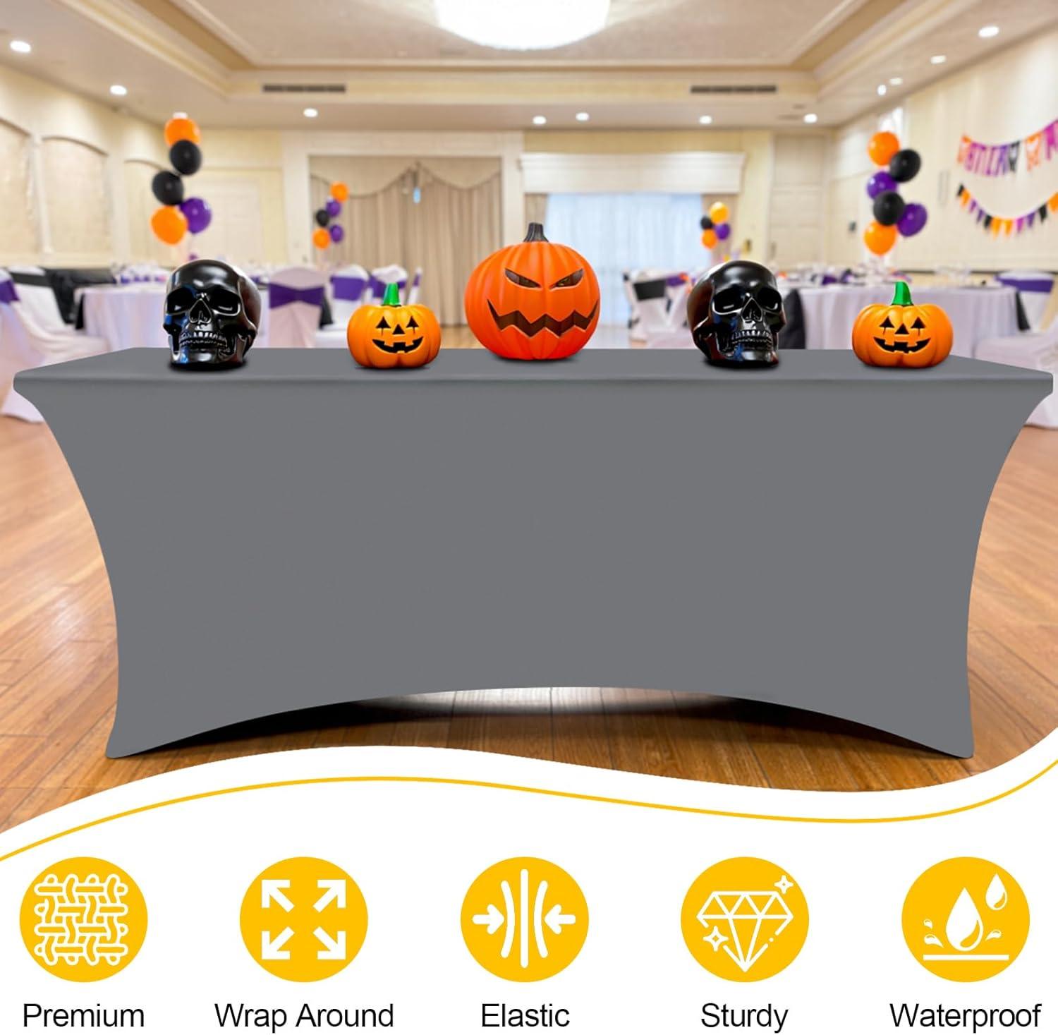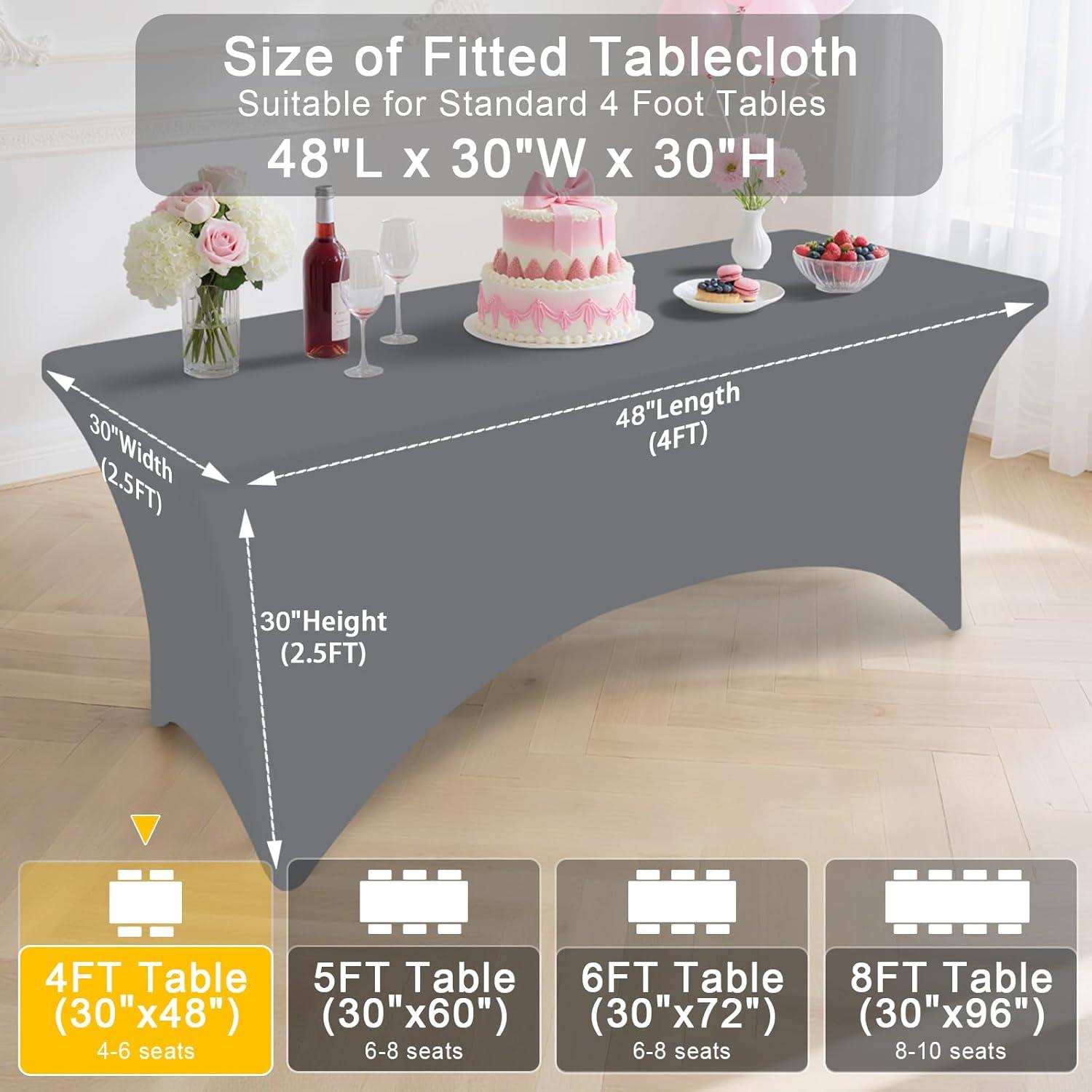 Smiry 2 Pack Spandex Table Cloth 6FT, Elastic Fitted Stretch Tablecloths, Washable and Wrinkle Free Rectangular Patio Table Cover for Outdoor, Wedding, Banquet & Parties (Navy, 72Lx30Wx30H Inch)(Grey)