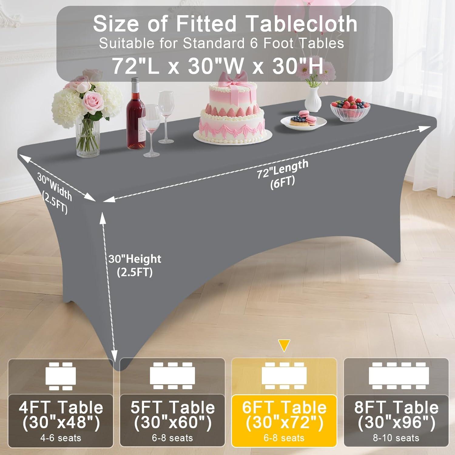 [Measurement] Our tablecloth dimensions for a 6-foot table are 72 inches in length, 30 inches in width, and 30 inches in height. Please measure your table to ensure you choose the appropriate size before making a purchase.