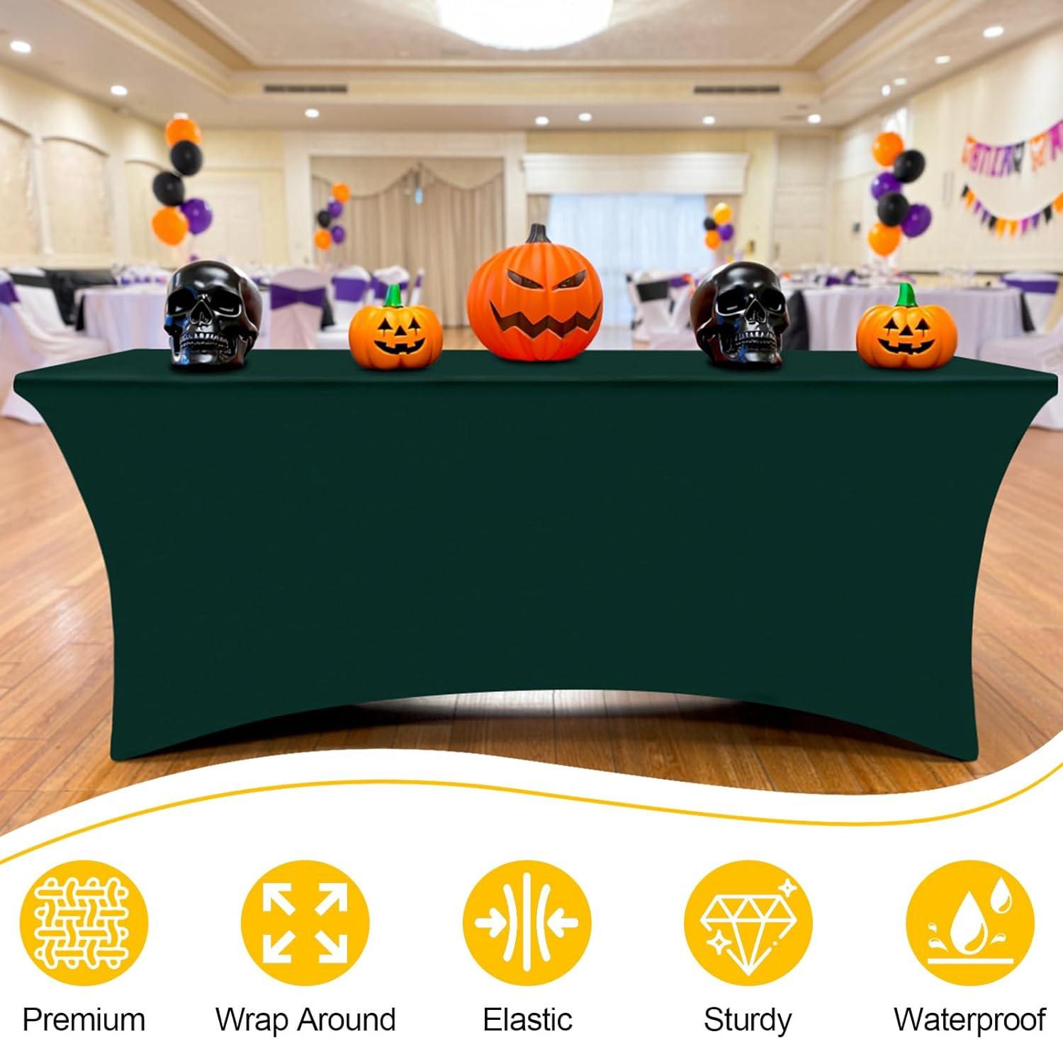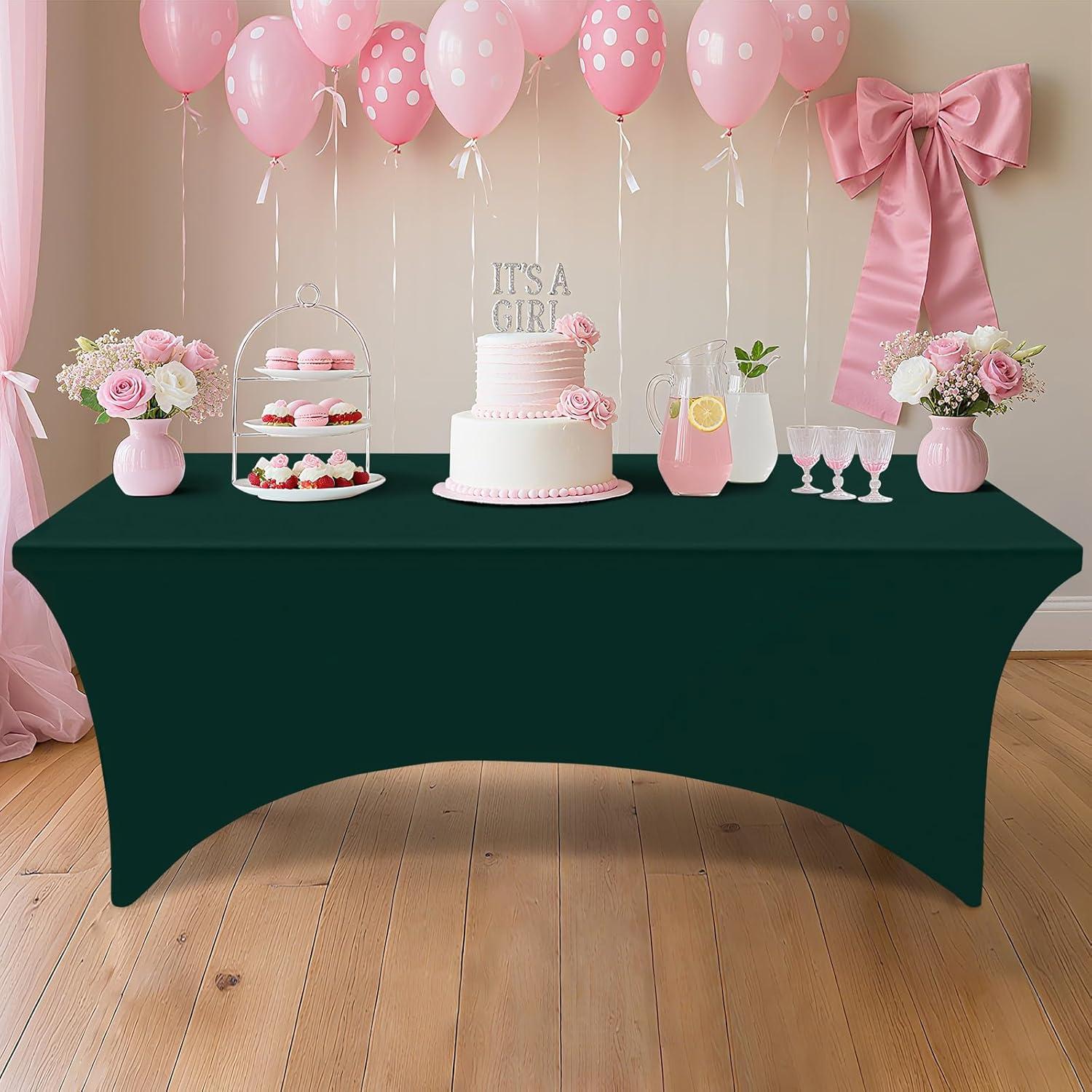 Smiry 2 Pack Spandex Table Cloth 6FT, Elastic Fitted Stretch Tablecloths, Washable and Wrinkle Free Rectangular Patio Table Cover for Outdoor, Wedding, Banquet & Parties (Navy, 72Lx30Wx30H Inch)(Hunter Green)