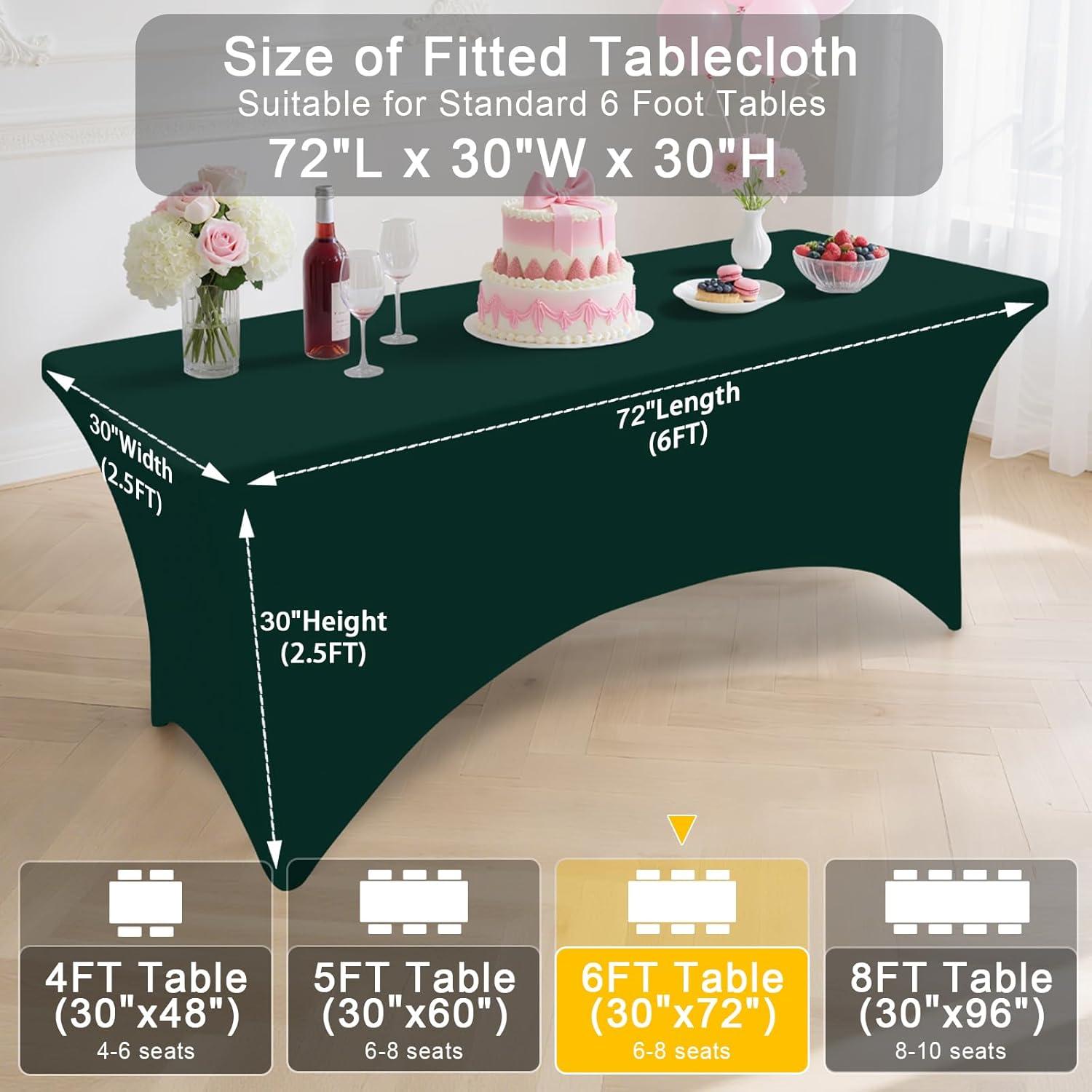 [Measurement] Our tablecloth dimensions for a 6-foot table are 72 inches in length, 30 inches in width, and 30 inches in height. Please measure your table to ensure you choose the appropriate size before making a purchase.