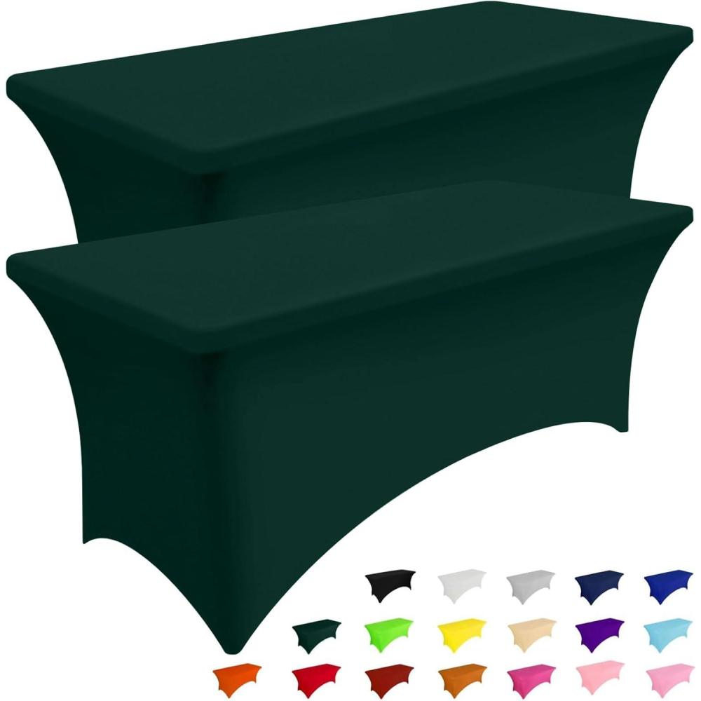 imageSmiry 2 Pack Spandex Table Cloth 6FT Elastic Fitted Stretch Tablecloths Washable and Wrinkle Free Rectangular Patio Table Cover for Outdoor Wedding Banquet ampamp Parties Navy 72Lx30Wx30H InchHunter Green