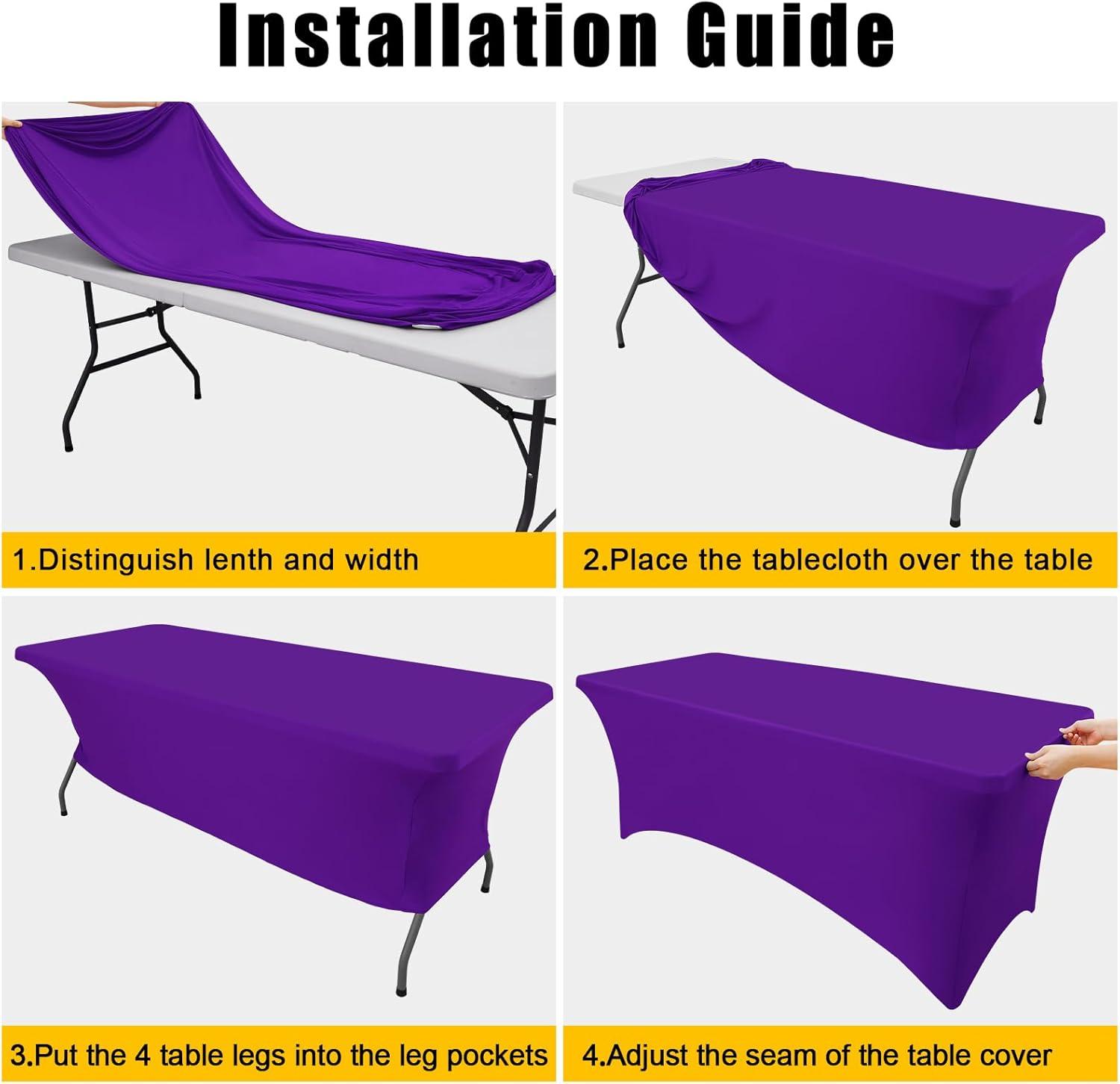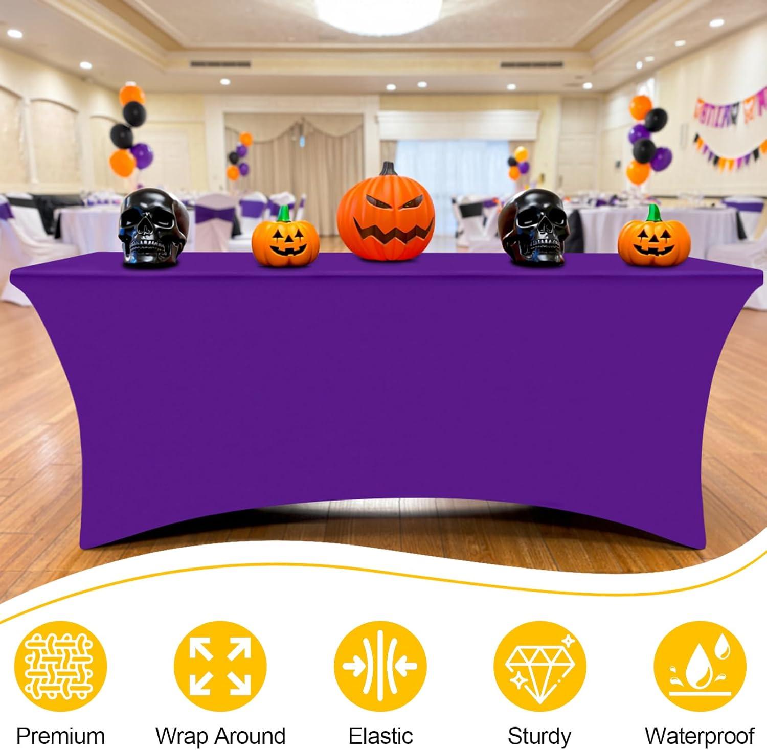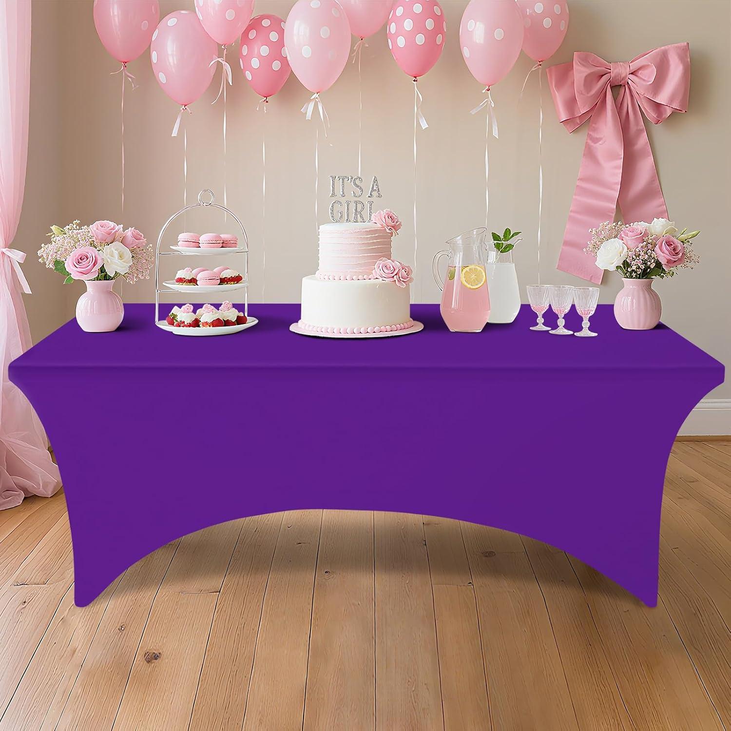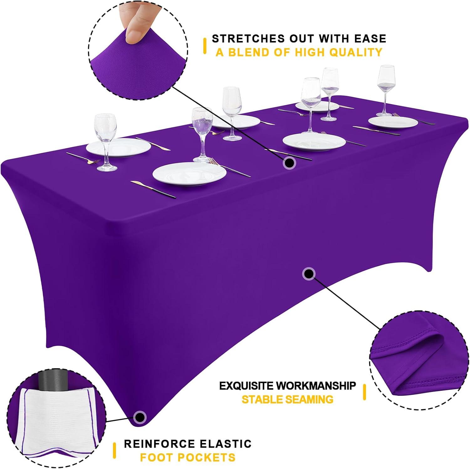 Smiry 2 Pack Spandex Table Cloth 6FT, Elastic Fitted Stretch Tablecloths, Washable and Wrinkle Free Rectangular Patio Table Cover for Outdoor, Wedding, Banquet & Parties (Navy, 72Lx30Wx30H Inch)(Purple)