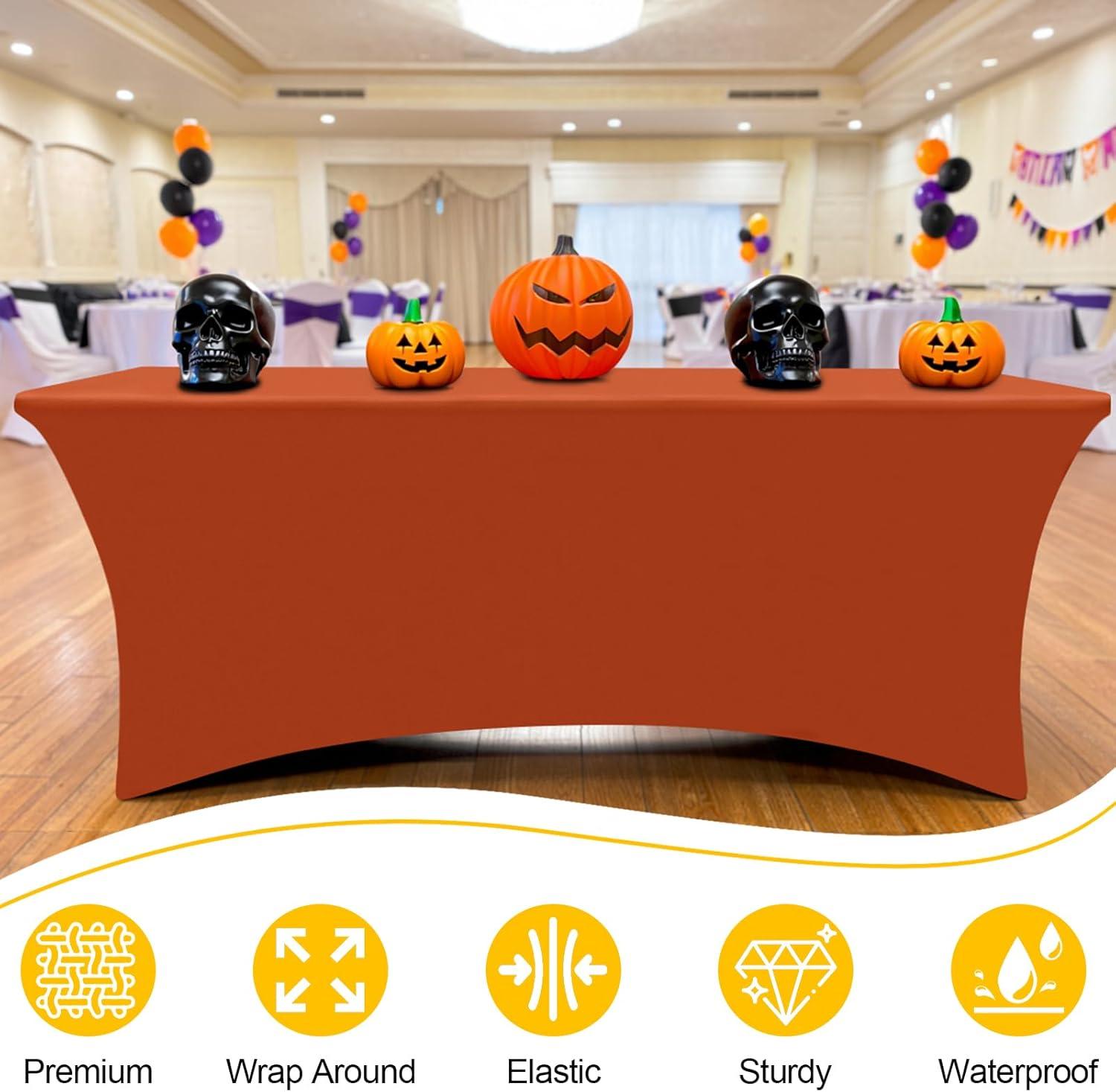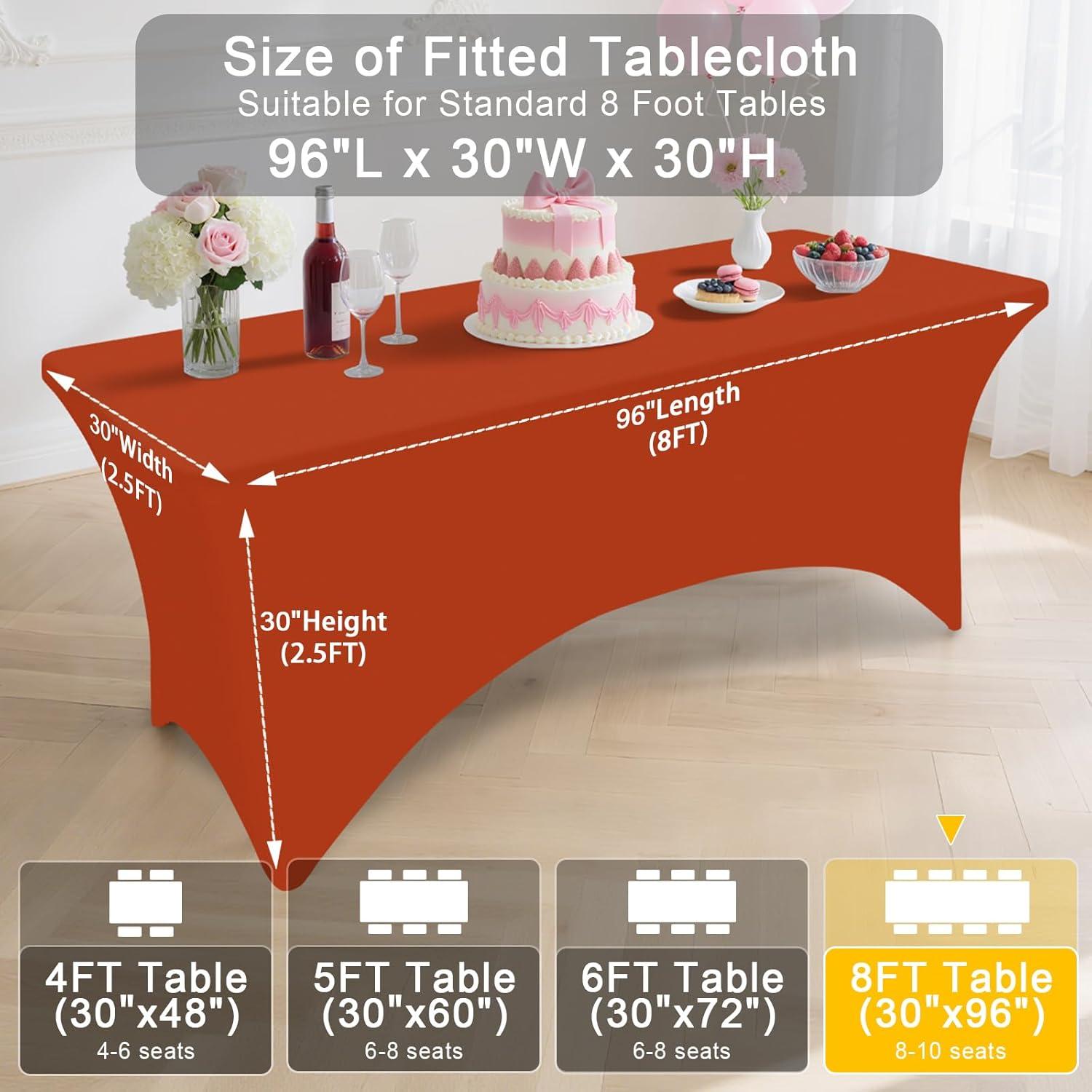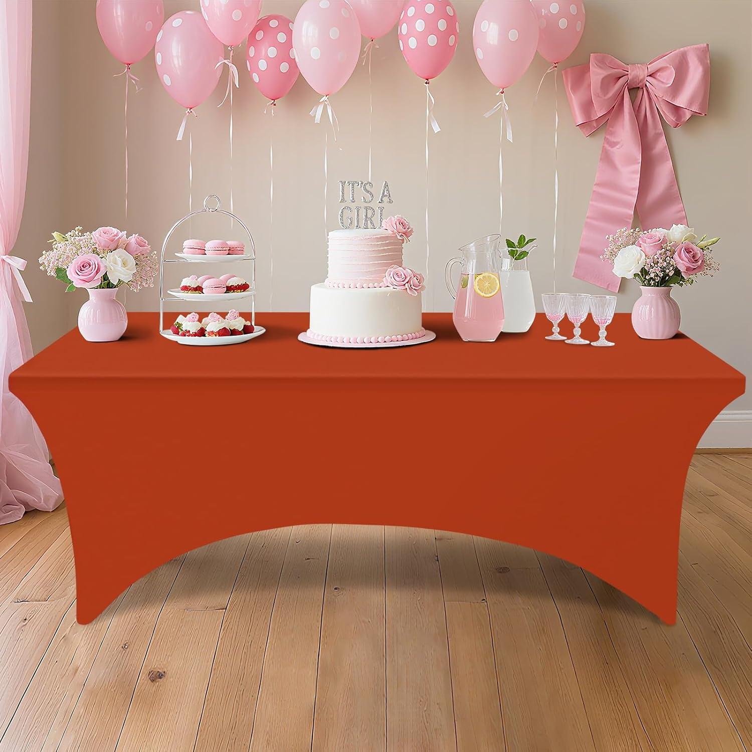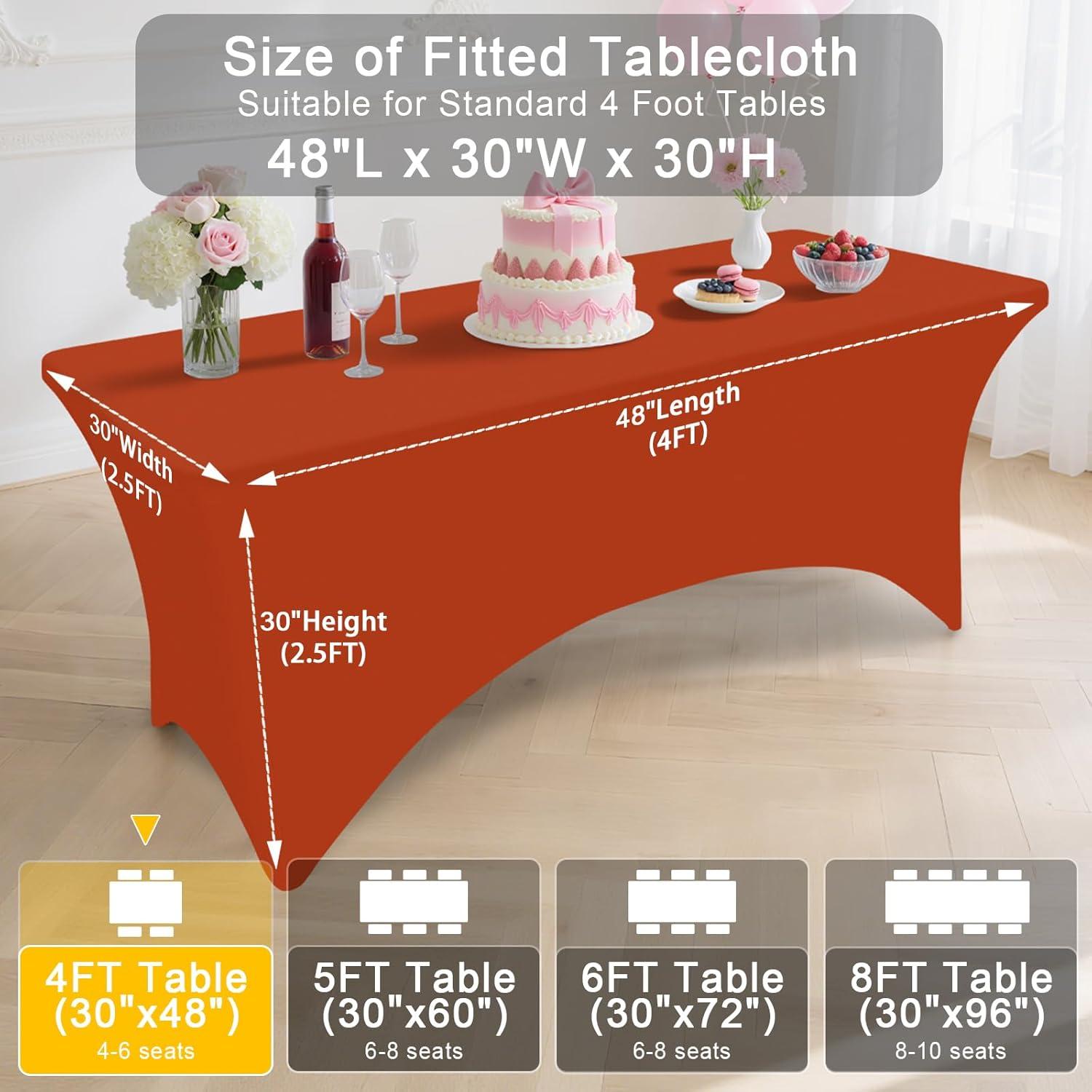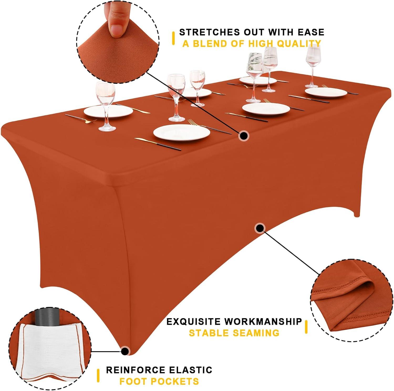 Smiry 2 Pack Spandex Table Cloth 6FT, Elastic Fitted Stretch Tablecloths, Washable and Wrinkle Free Rectangular Patio Table Cover for Outdoor, Wedding, Banquet & Parties (Navy, 72Lx30Wx30H Inch)(Rust)
