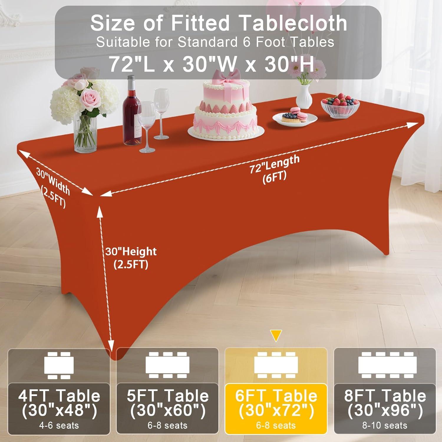 [Measurement] Our tablecloth dimensions for a 6-foot table are 72 inches in length, 30 inches in width, and 30 inches in height. Please measure your table to ensure you choose the appropriate size before making a purchase.