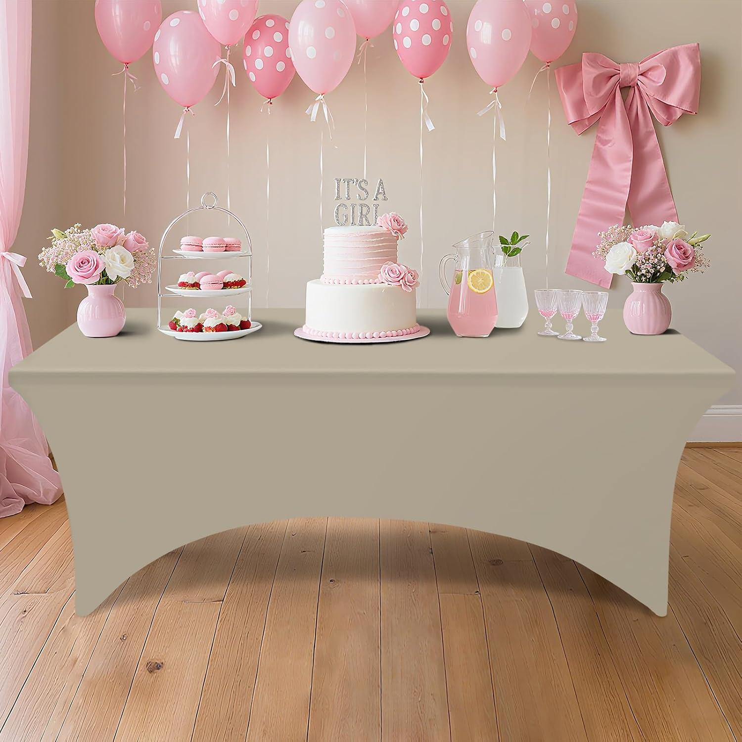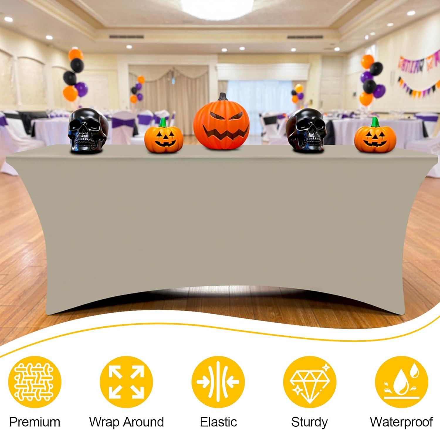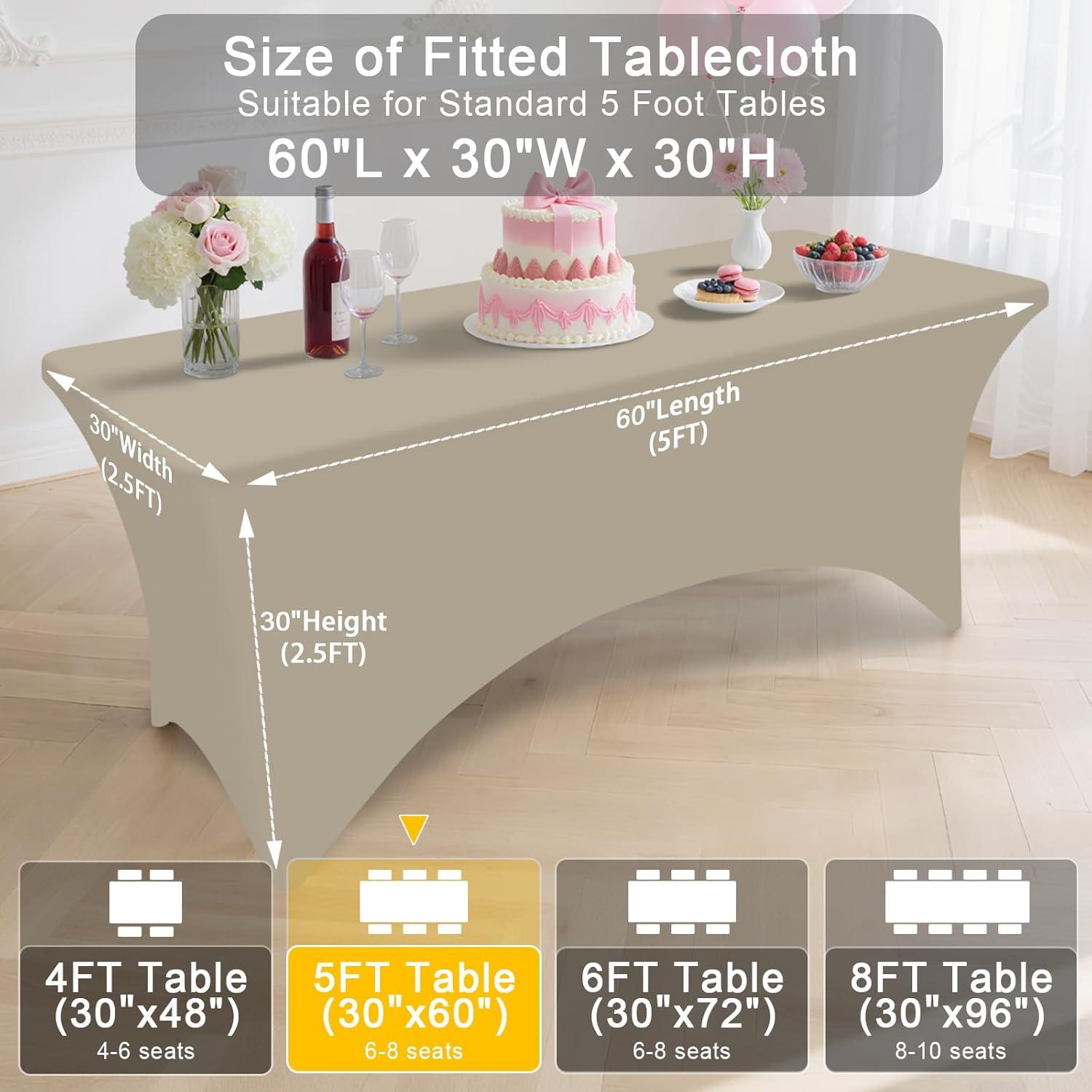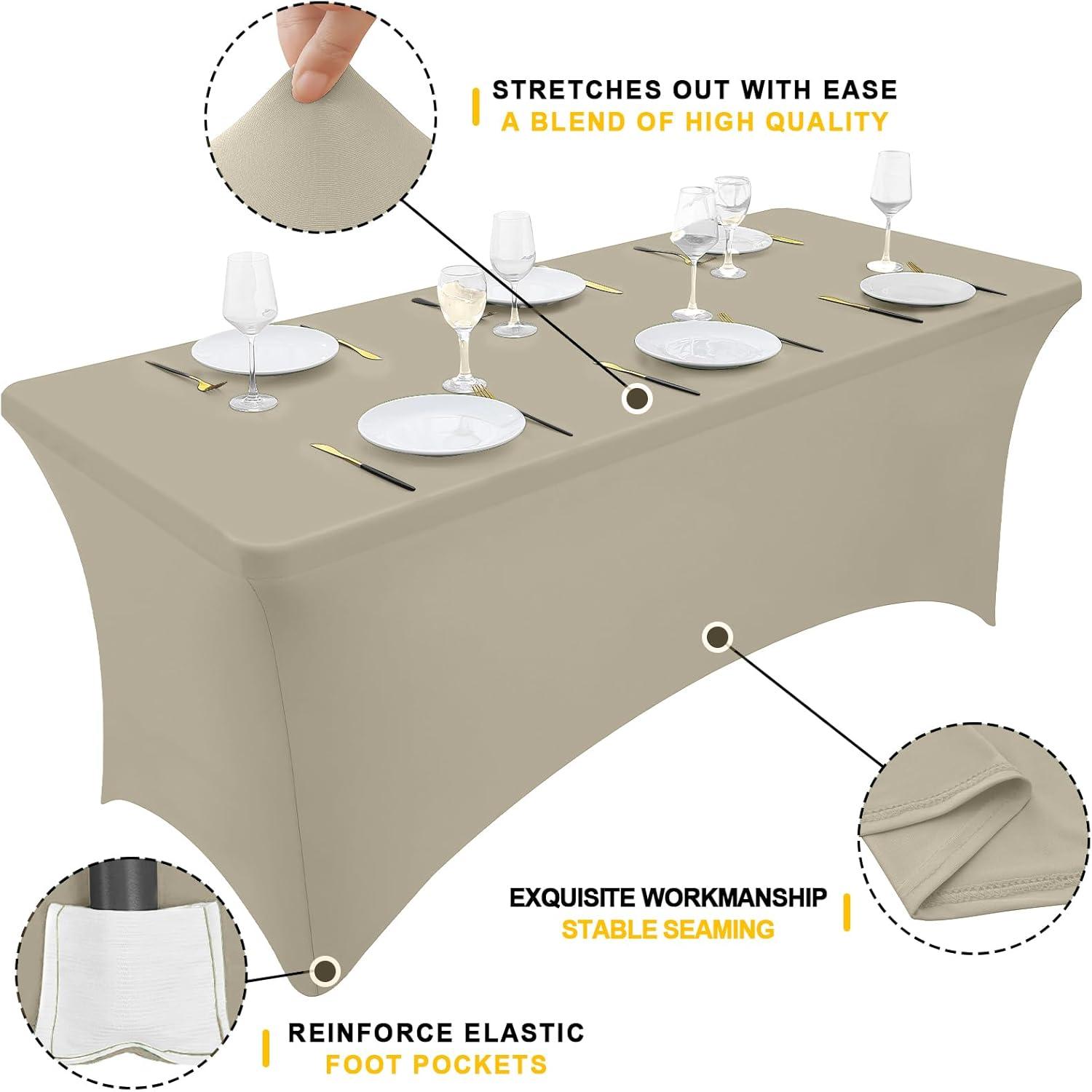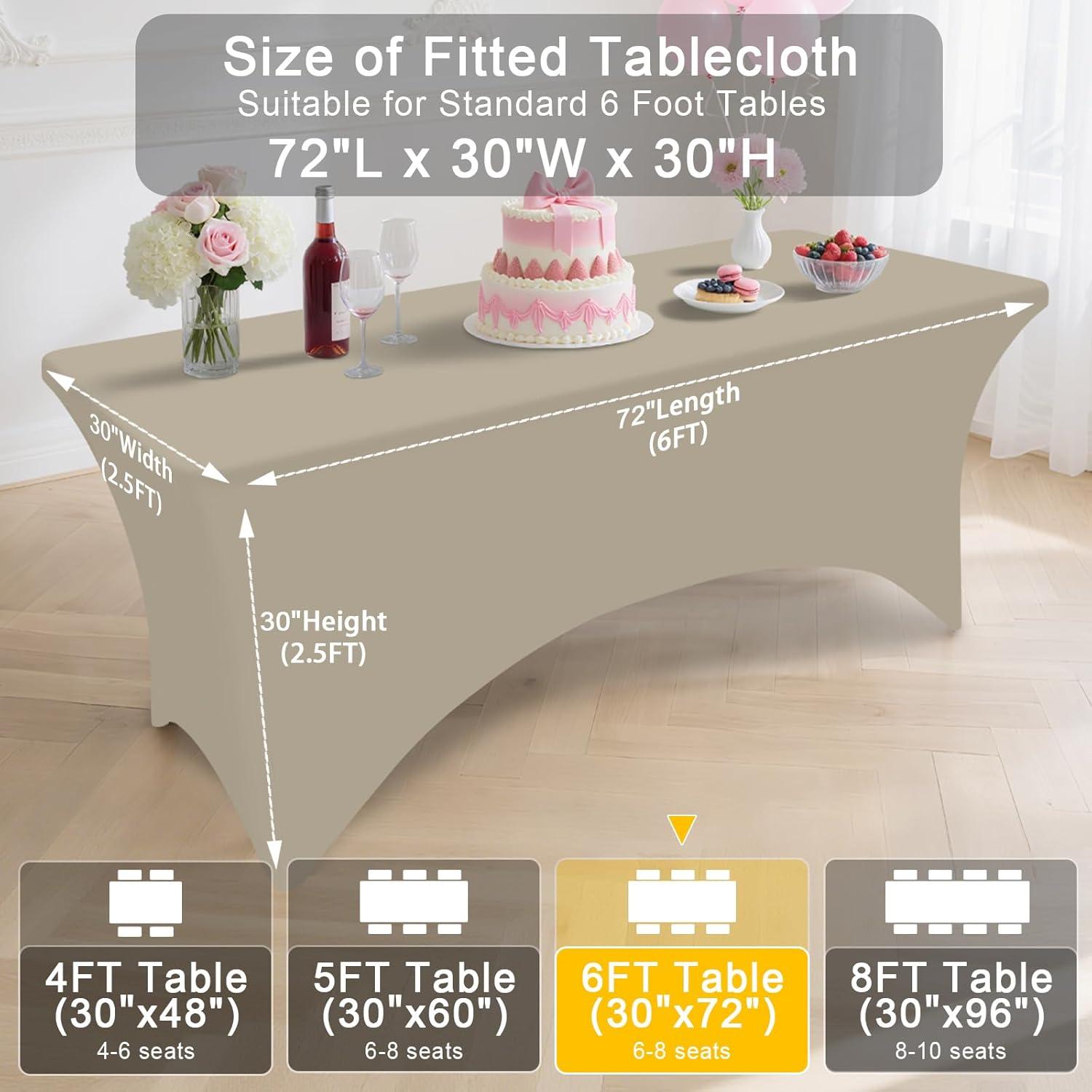 Smiry 2 Pack Spandex Table Cloth 6FT, Elastic Fitted Stretch Tablecloths, Washable and Wrinkle Free Rectangular Patio Table Cover for Outdoor, Wedding, Banquet & Parties (Navy, 72Lx30Wx30H Inch)(Taupe)