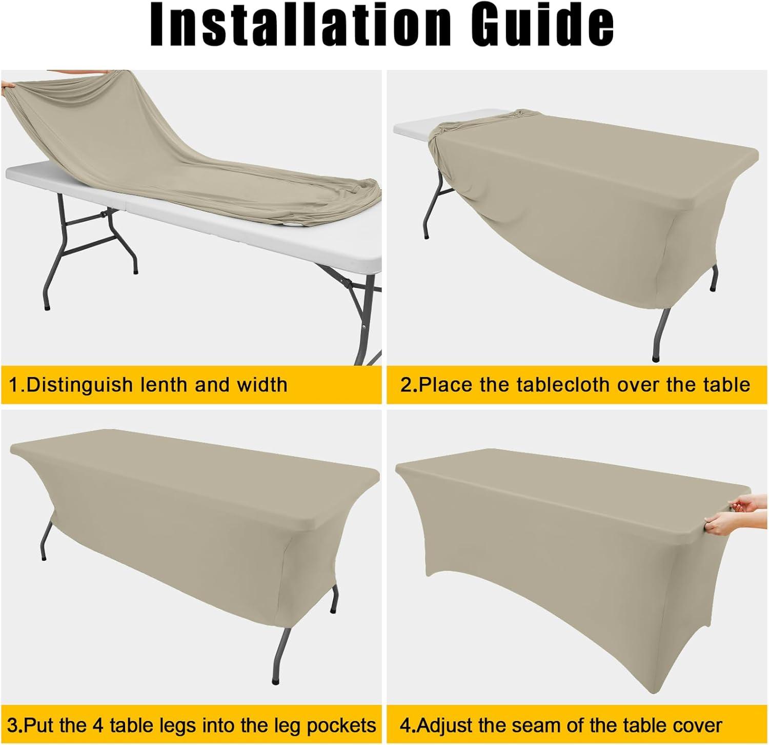 [Elastic & Full Coverage] Smiry elastic tablecloth is made of high-quality 90% polyester and 10% spandex, offering excellent stretchability. Its unique design features four elastic leg pockets that securely accommodate folding table legs, ensuring complete coverage of every part of the rectangular table.