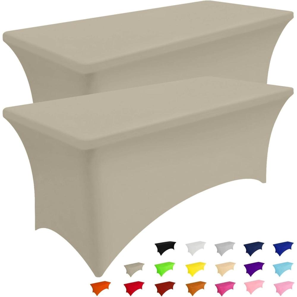 imageSmiry 2 Pack Spandex Table Cloth 6FT Elastic Fitted Stretch Tablecloths Washable and Wrinkle Free Rectangular Patio Table Cover for Outdoor Wedding Banquet ampamp Parties Navy 72Lx30Wx30H InchTaupe