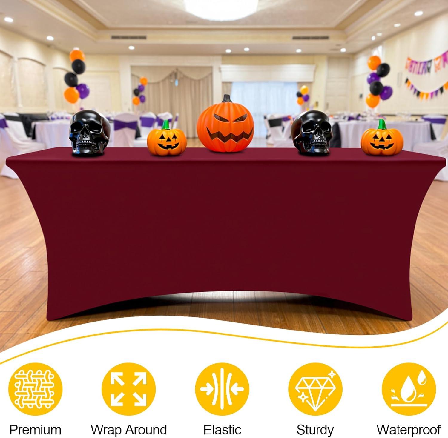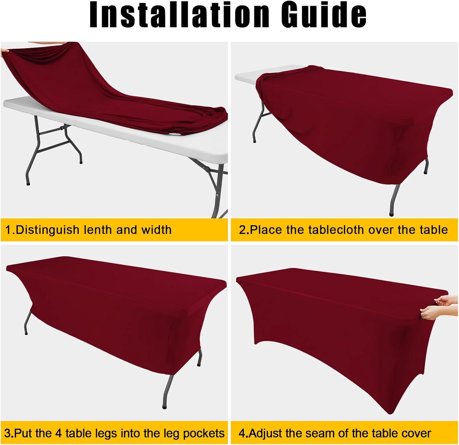 [Elastic & Full Coverage] Smiry elastic tablecloth is made of high-quality 90% polyester and 10% spandex, offering excellent stretchability. Its unique design features four elastic leg pockets that securely accommodate folding table legs, ensuring complete coverage of every part of the rectangular table.