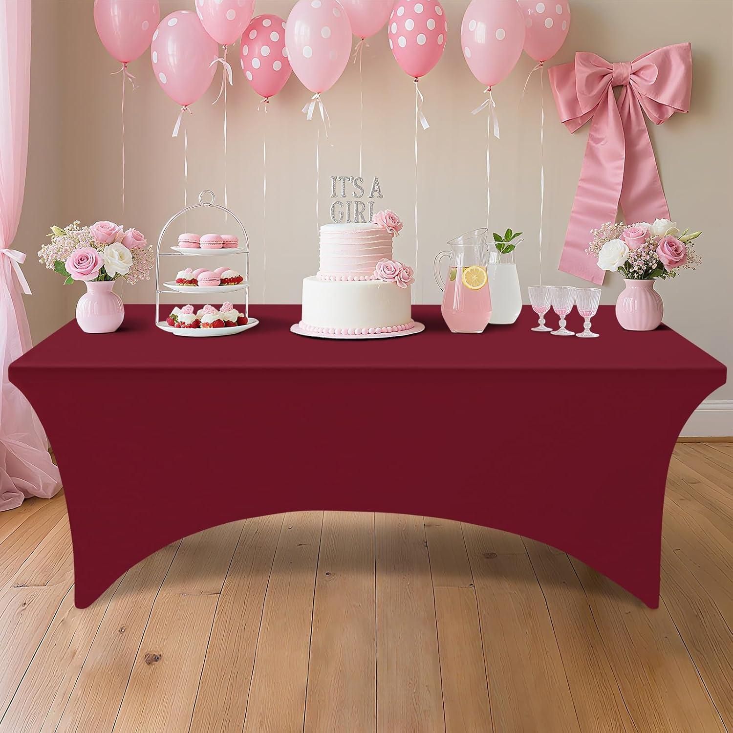 Smiry 2 Pack Spandex Table Cloth 6FT, Elastic Fitted Stretch Tablecloths, Washable and Wrinkle Free Rectangular Patio Table Cover for Outdoor, Wedding, Banquet & Parties (Navy, 72Lx30Wx30H Inch)(Wine Red)
