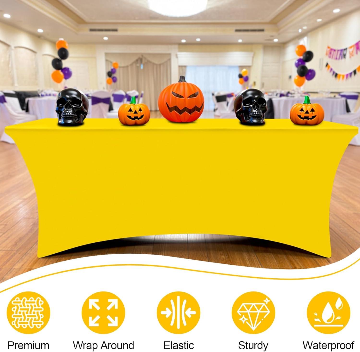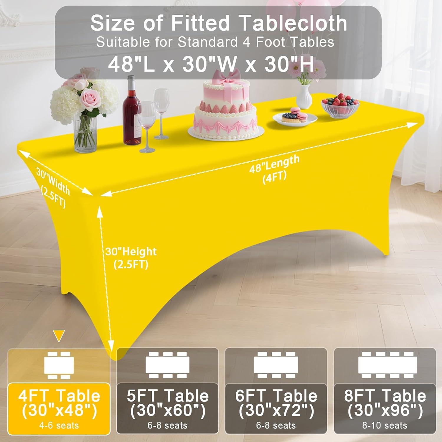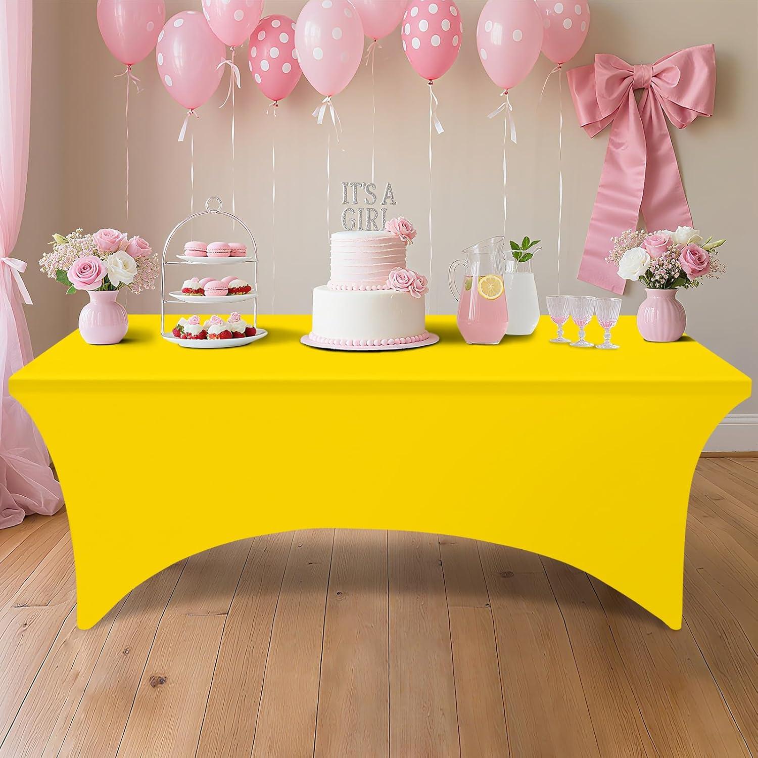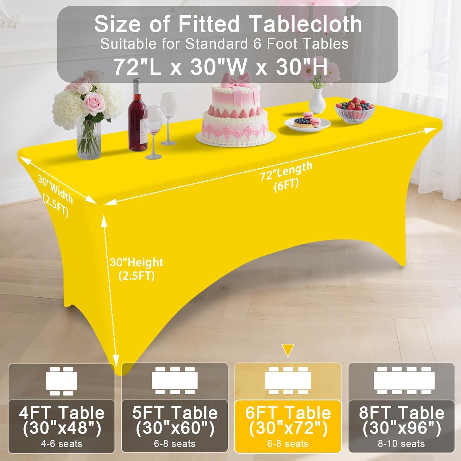 Smiry 2 Pack Spandex Table Cloth 6FT, Elastic Fitted Stretch Tablecloths, Washable and Wrinkle Free Rectangular Patio Table Cover for Outdoor, Wedding, Banquet & Parties (Navy, 72Lx30Wx30H Inch)(Yellow)