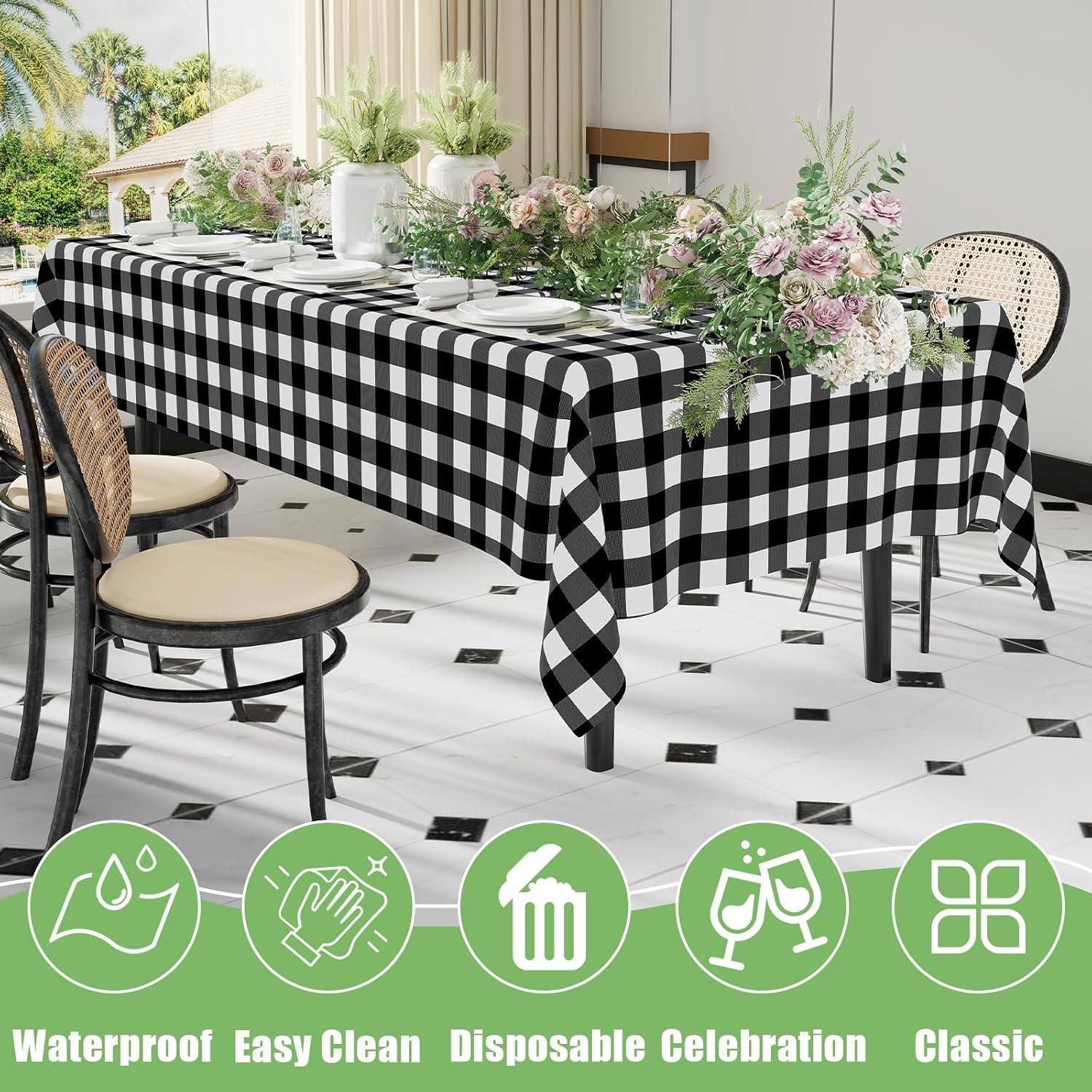 imageSmiry 3 Packs Gingham Disposable Table Cloth 54 x 108 Inch Waterproof Plastic Tablecloth Rectangle Khaki and White Checkered Table Covers for Picnic Birthday PartyBlack and White