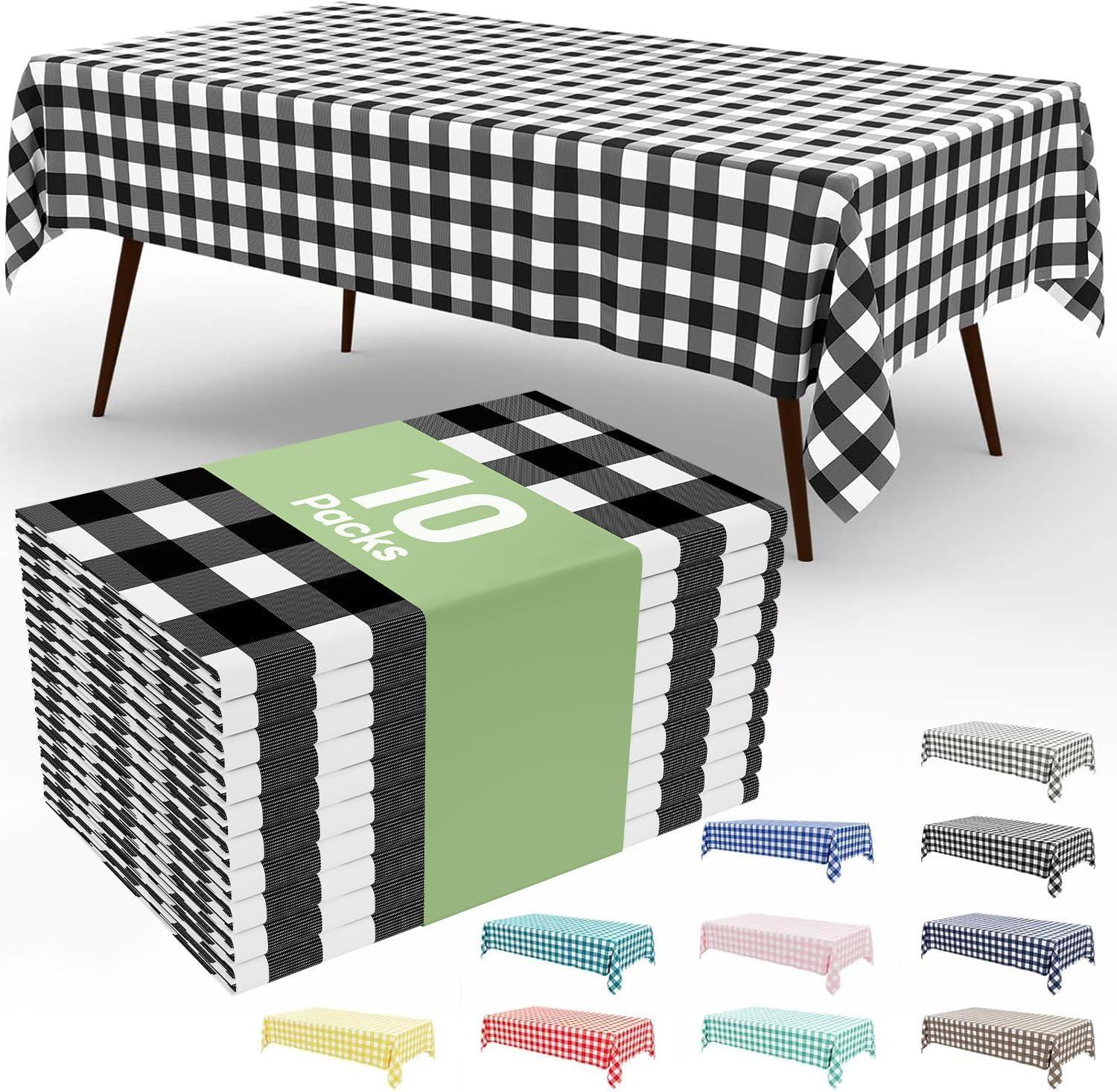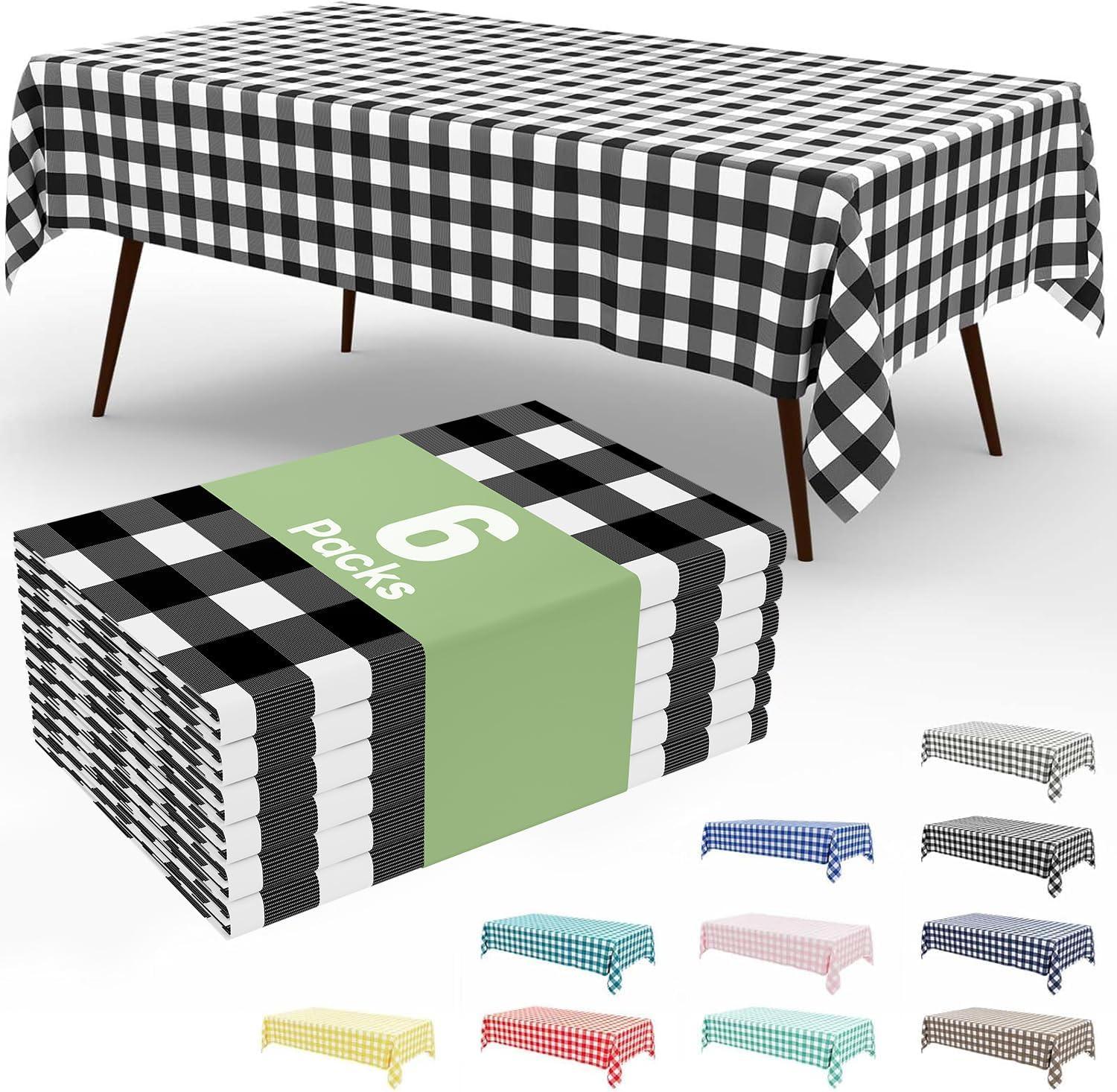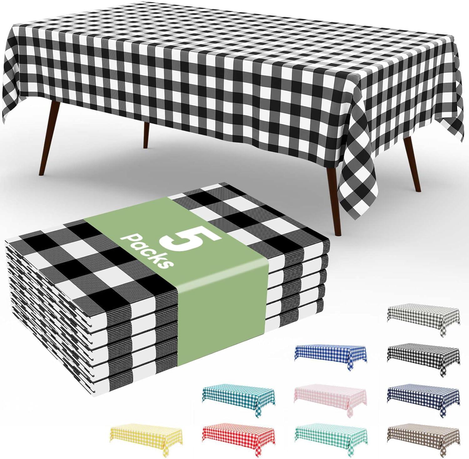 Smiry 3 Packs Gingham Disposable Table Cloth, 54 x 108 Inch Waterproof Plastic Tablecloth, Rectangle Khaki and White Checkered Table Covers for Picnic, Birthday, Party(Black and White)