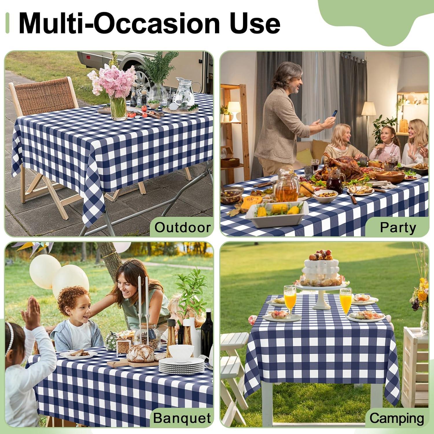 [Classic & Versatile] Our rectangular tablecloth is 108 inches/274cm long and 54 inches/137cm wide. Designed for dining, weddings, parties, banquets, events, picnics, campings, indoor and outdoor use.