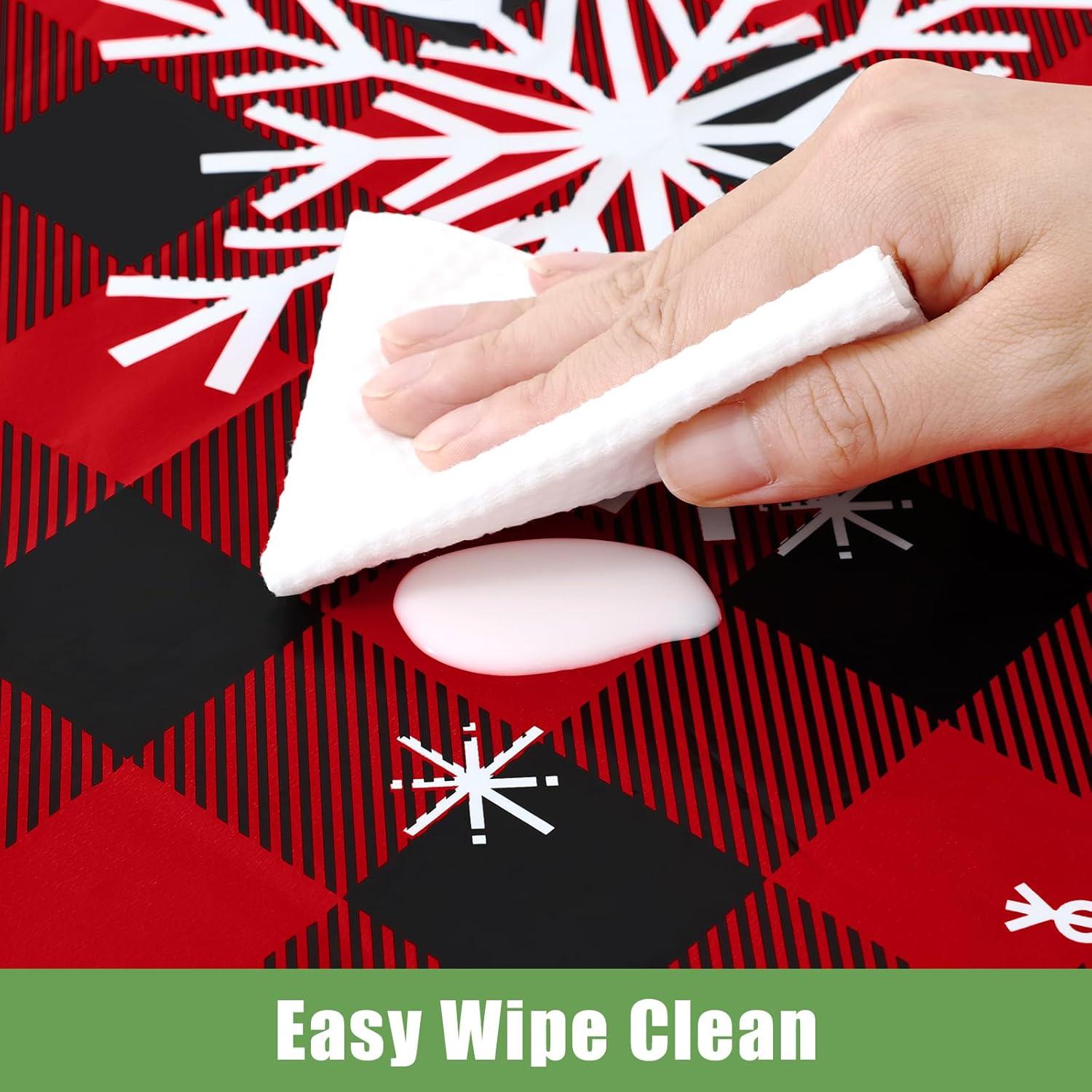 [Waterproof & Easy Clean] The surface of our plastic table cloth is waterproof, providing protection for your table from spills and stains. Simply wipe the tablecloth with a damp cloth to easily clean. After use, just dispose of it, and you're done!
