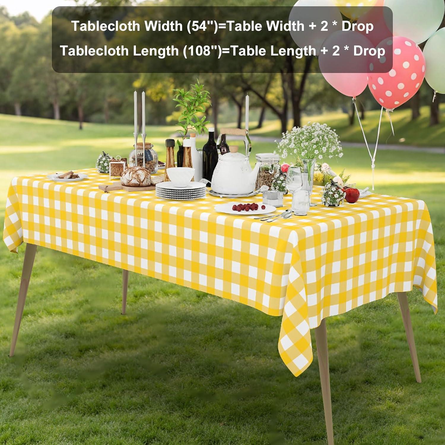 [Classic & Versatile] Our rectangular tablecloth is 108 inches/274cm long and 54 inches/137cm wide. Designed for dining, weddings, parties, banquets, events, picnics, campings, indoor and outdoor use.