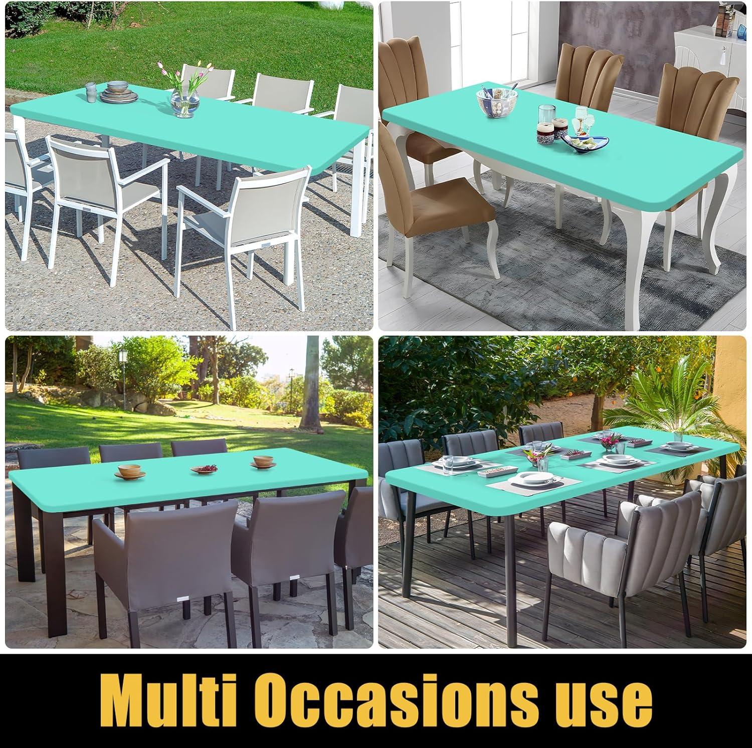 Smiry 4 Pack Rectangle Picnic Table Cloth, Waterproof Elastic Fitted Tablecloths, Washable Polyester Rectangular Patio Table Cover for Camping, Indoor and Outdoor (Black, 30"x72")(Aqua)