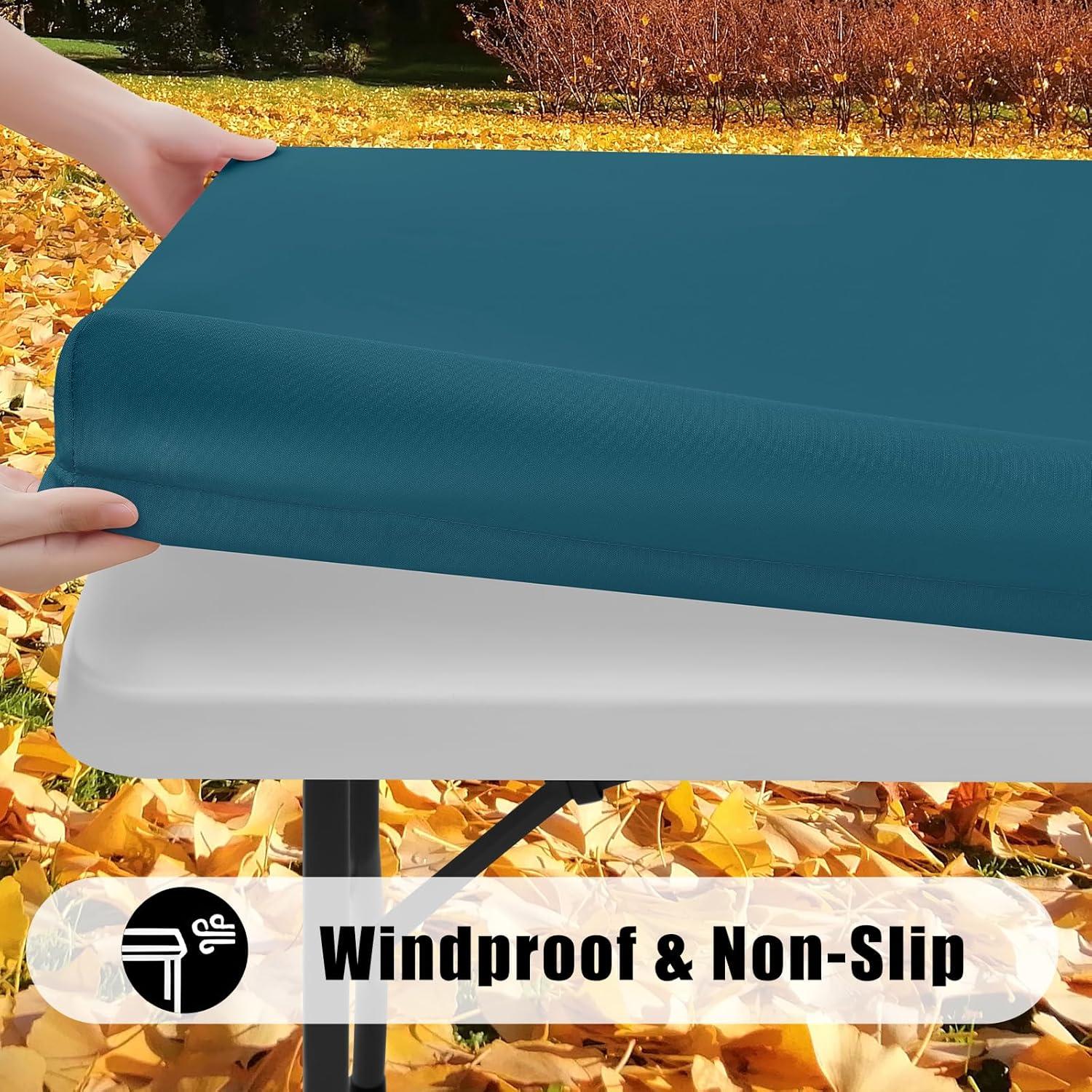 Smiry 4 Pack Rectangle Picnic Table Cloth, Waterproof Elastic Fitted Tablecloths, Washable Polyester Rectangular Patio Table Cover for Camping, Indoor and Outdoor (Black, 30"x72")(Peacock Blue)