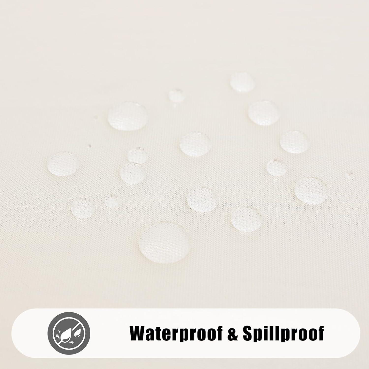 [Waterproof & Stain Proof] The table cloth is covered with a waterproof coating that causes liquids to form beads on the surface, allowing them to roll off without through to the table. This makes it easy to wipe away most of spills with a damp cloth.