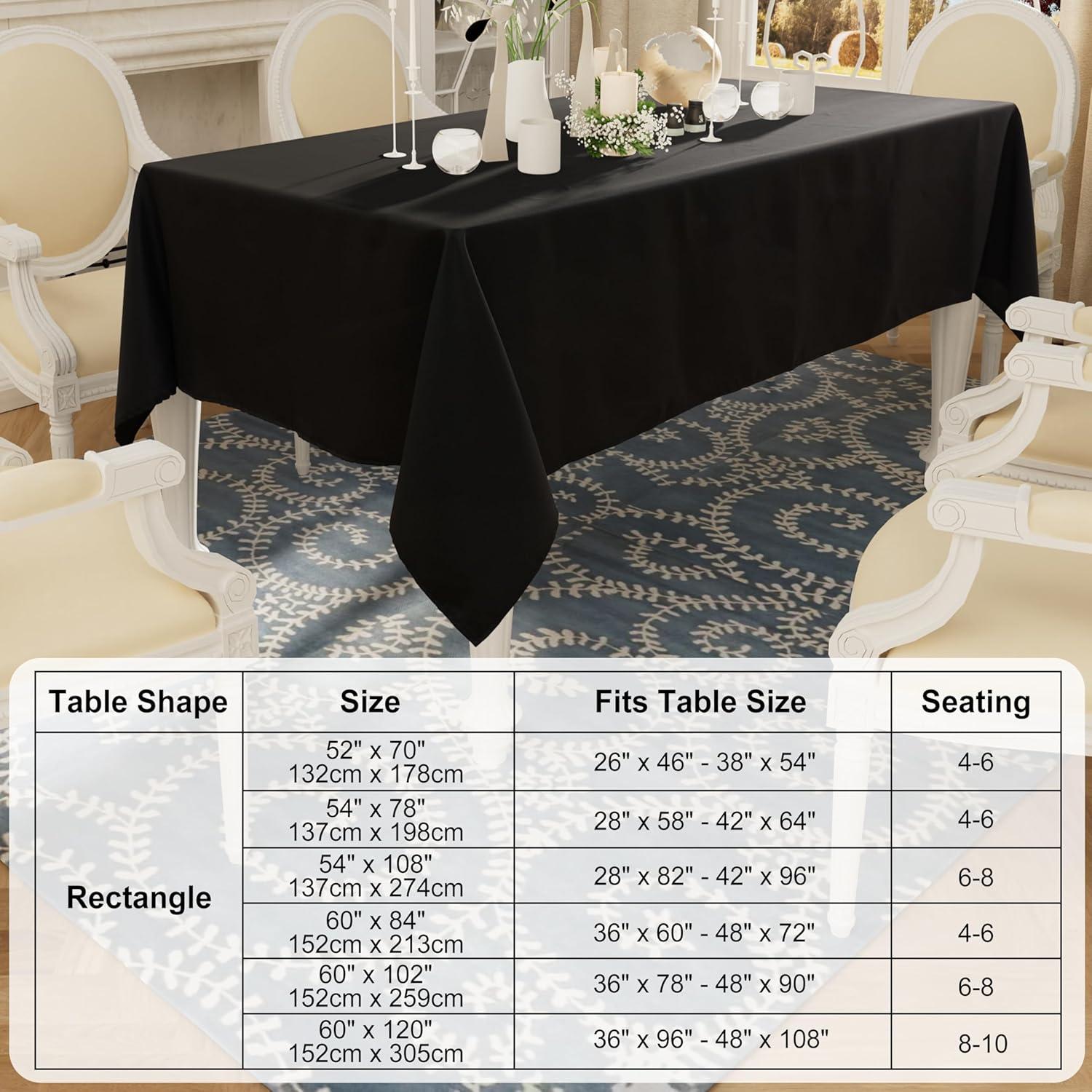 Smiry 4 Pack Rectangle Table Cloth, Waterproof Anti-Scratch Polyester Tablecloth, Decorative Washable Fabric Table Cover for Dining, Buffet, Parties and Outdoor, 60x102, Black(Black)