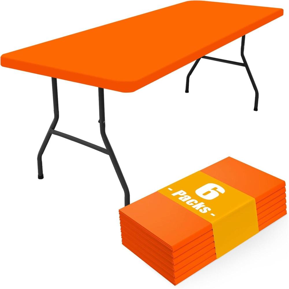 Smiry 6 Pack Rectangle Picnic Table Cloth, Waterproof Elastic Fitted Tablecloths, Washable Polyester Rectangular Patio Table Cover for Camping, Indoor and Outdoor (Black, 30"x72")(Orange)